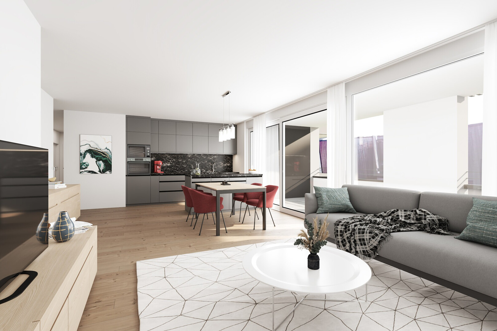 Die Küche inkl. Elektrogeräte ist beim Kaufpreis dabei. Unser Partnerunternehmen plant gemeinsam mit Ihnen Ihre Traumküche. Um Wasserinstallation, Verfliesung des Küchenspiegels und Anschluss der Küchengeräte kümmern wir uns.