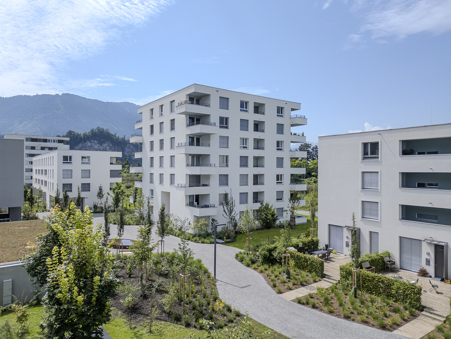 Des Weiteren verfügt die Wohnung über einen Glasfaseranschluss für schnelles Internet sowie eine öffentliche Ladestation für E-Mobilität direkt im Quartier.