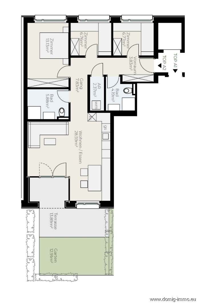 Jede Wohnung verfügt über eine Terrasse sowie ein eigenes Kellerabteil. Tiefgaragenplätze sind zum Kaufpreis von € 27.000,- erhältlich und nicht im Wohnungspreis enthalten.