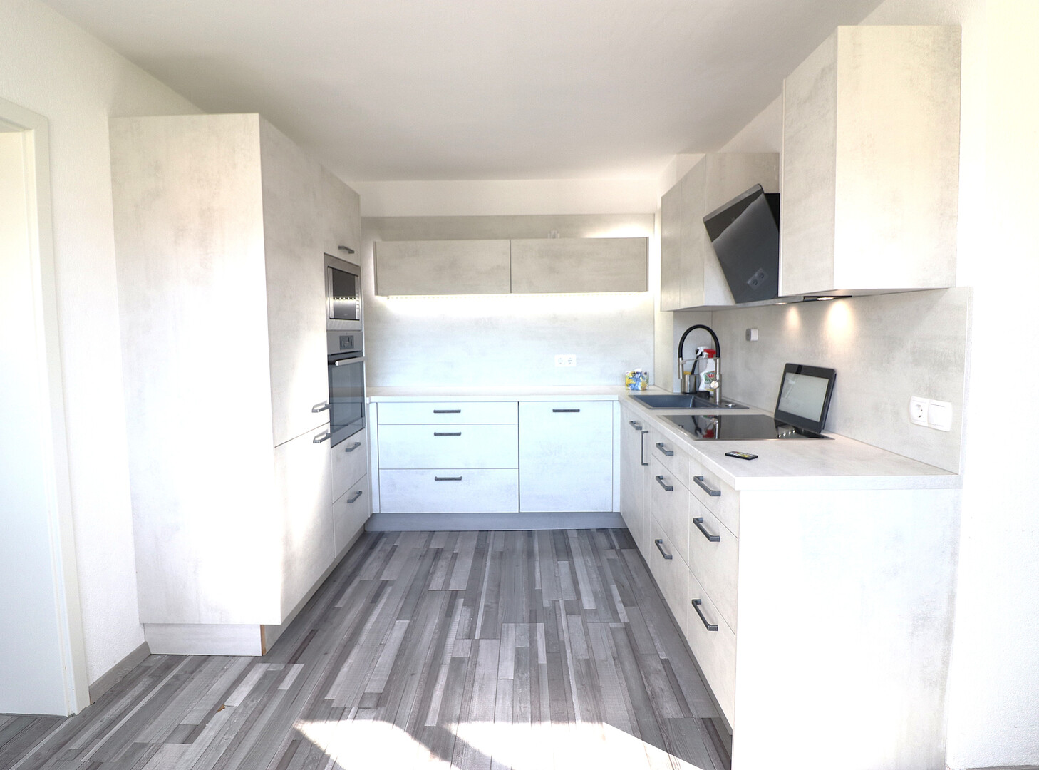 - Küche mit komplett ausgestatteter Küchenzeile und Essbereich