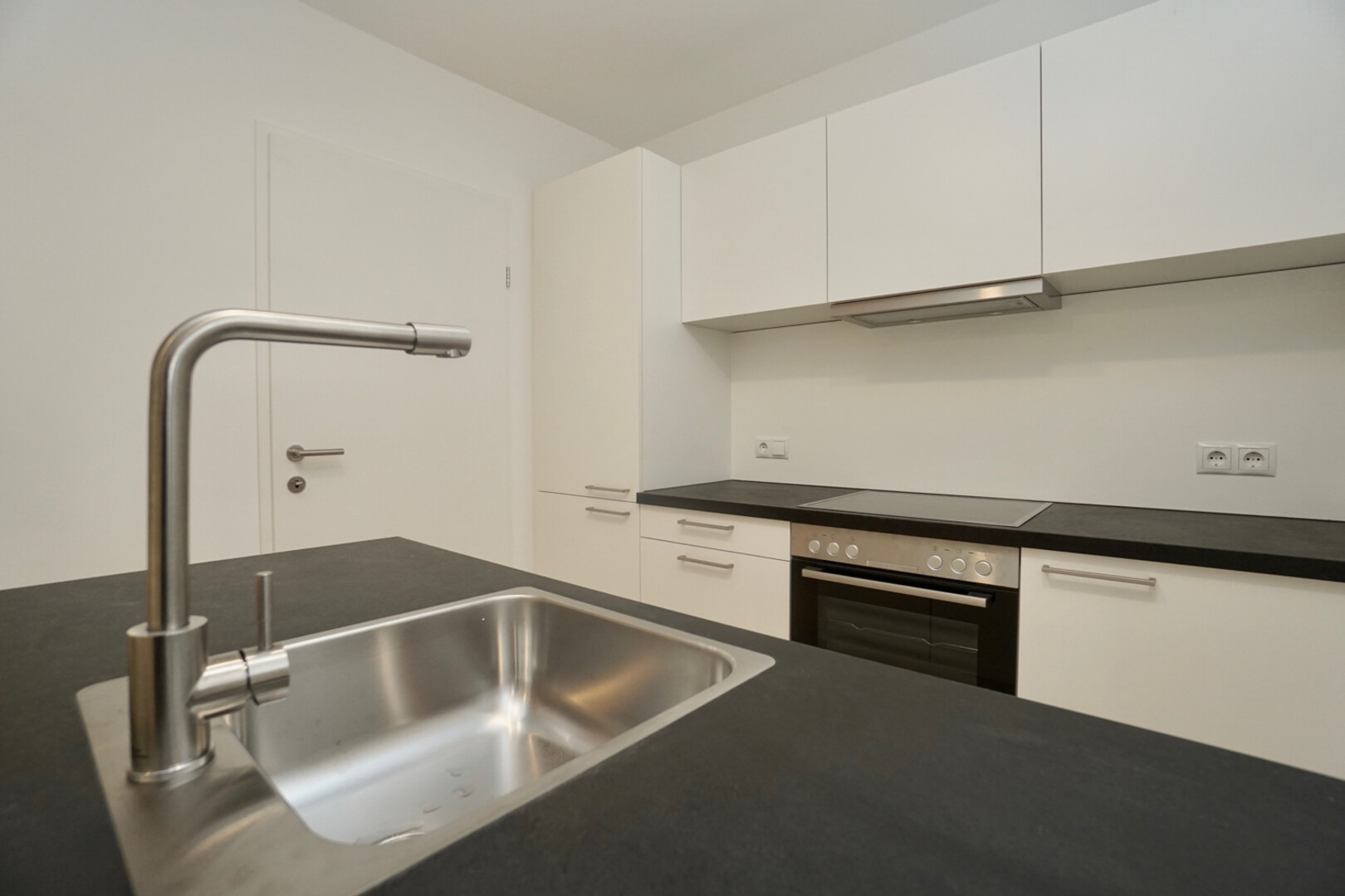Die Sanitäreinrichtungsgegenstände für das WC und das Badezimmer, sind ebenfalls wie der Waschmaschinenanschluss inkludiert. Die Wohnung wird noch mit einer tollen Einbauküche ausgestattet.