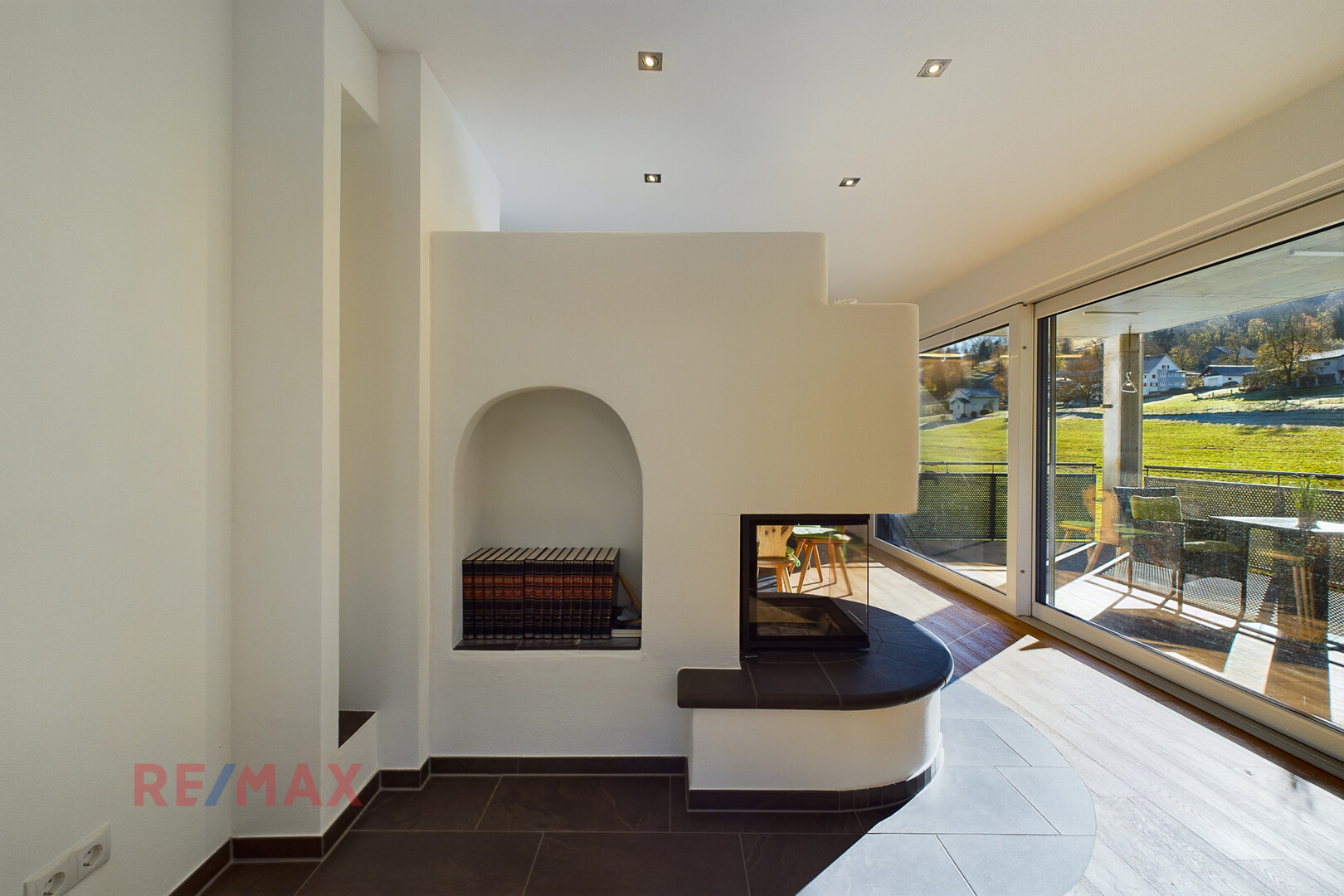 Ambiente, welches durch den stilvollen Kaminofen noch verstärkt wird – perfekt