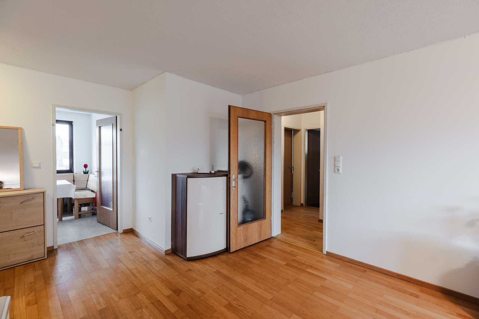 Die Wohnung liegt im 1. Obergeschoss eines Mehrfamilienhauses aus dem Jahr 1971 und überzeugt durch eine clevere Raumaufteilung. Ob als gemütliches Familiennest oder als lukrative Wohngemeinschaft - die drei separaten Schlafzimmer bieten flexible Nutzungsmöglichkeiten. In den letzten Jahren wurde die Wohnung erfolgreich als WG genutzt, was das Potenzial dieser Immobilie unterstreicht.