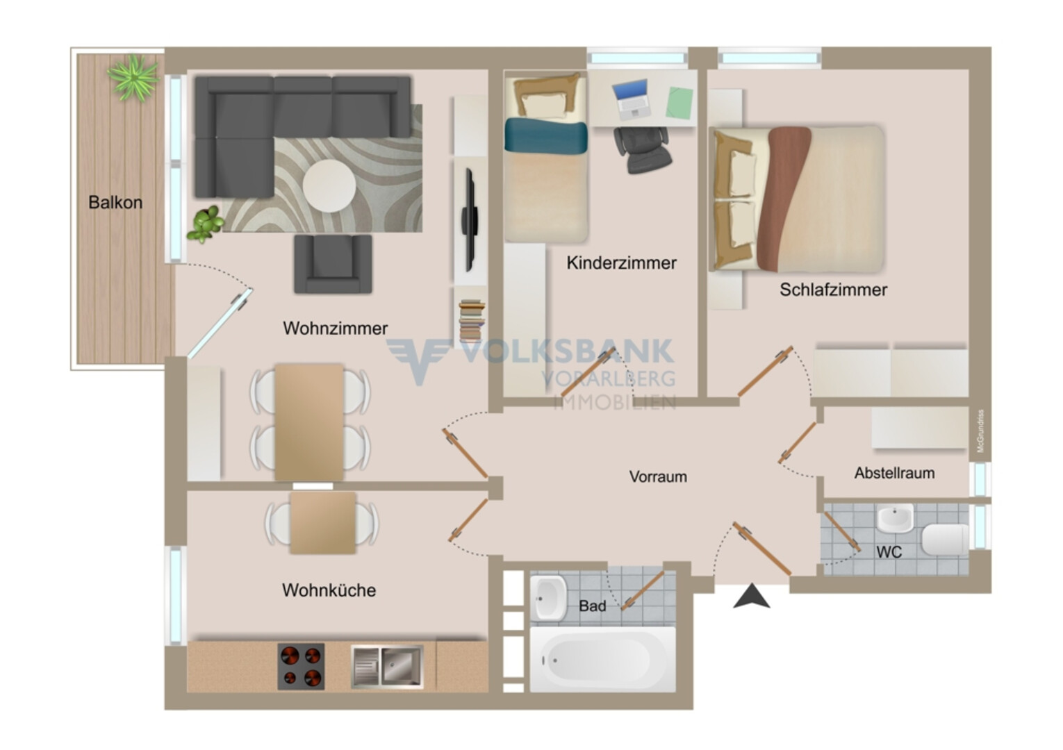 Wir weisen Sie darauf hin, dass der angeführte Grundriss als Symbolbild gilt und dieser sowie die darin enthaltenen Flächenangaben von den tatsächlichen Gegebenheiten abweichen können.