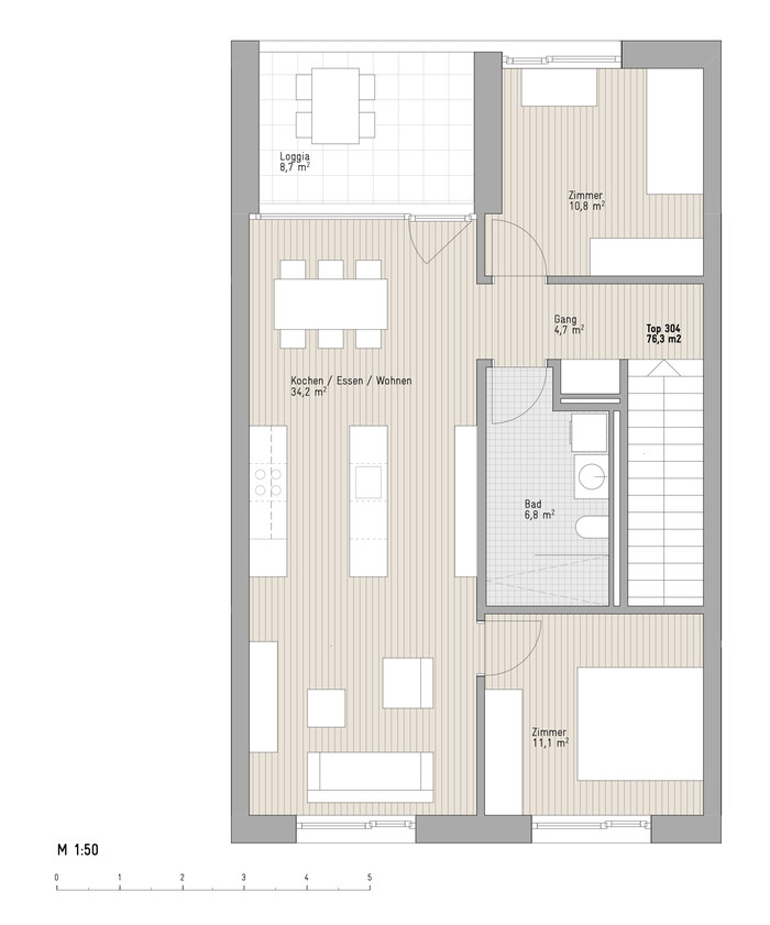 Des Weiteren verfügt die Wohnung über einen Glasfaseranschluss für schnelles Internet sowie eine öffentliche Ladestation für E-Mobilität direkt im Quartier. Die verwendeten Wärmedämmziegel und die Erdwärmeheizung sorgen für eine nachhaltige und energieeffiziente Beheizung.