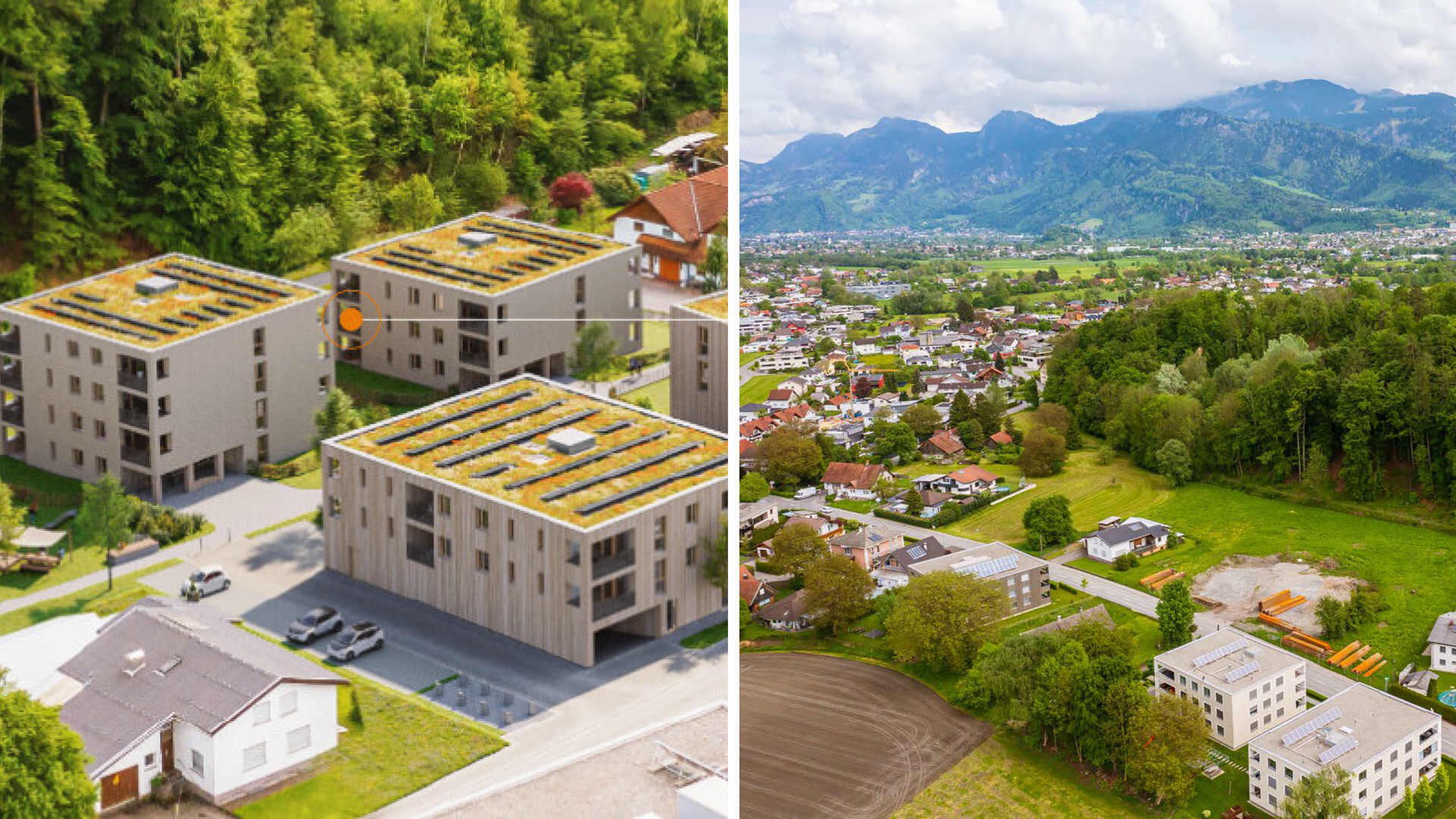 Koblach liegt im Rheintal nahe der Schweiz und bietet vielseitigen Lebensraum für Familien, Berufstätige und Ruheständler. Das moderne Haus C von Wilhelm+Mayer besteht aus hochporosierenden Ziegeln und hat ein begrüntes Flachdach. Eine Grundwasser-Wärmepumpe und eine Photovoltaik-Anlage (15 kWp) versorgen das Heizsystem. Die Anlage umfasst ein Erdgeschoss und zwei Obergeschosse mit 11 Einheiten: drei Gartenwohnungen und pro Etage vier Einheiten. Die Wohnfläche beträgt 45 m², 61 m² oder 78 m². Obergeschosswohnungen haben Loggien, Gartenwohnungen Terrassen. Im Untergeschoss gibt es Keller, einen Fahrradraum und eine Tiefgarage.
