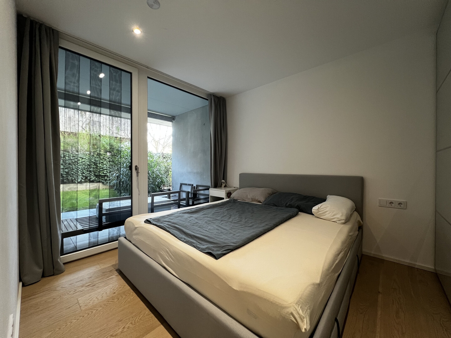 Das Schlafzimmer und der Wohnbereich sind mit Massivparkettböden ausgestattet.