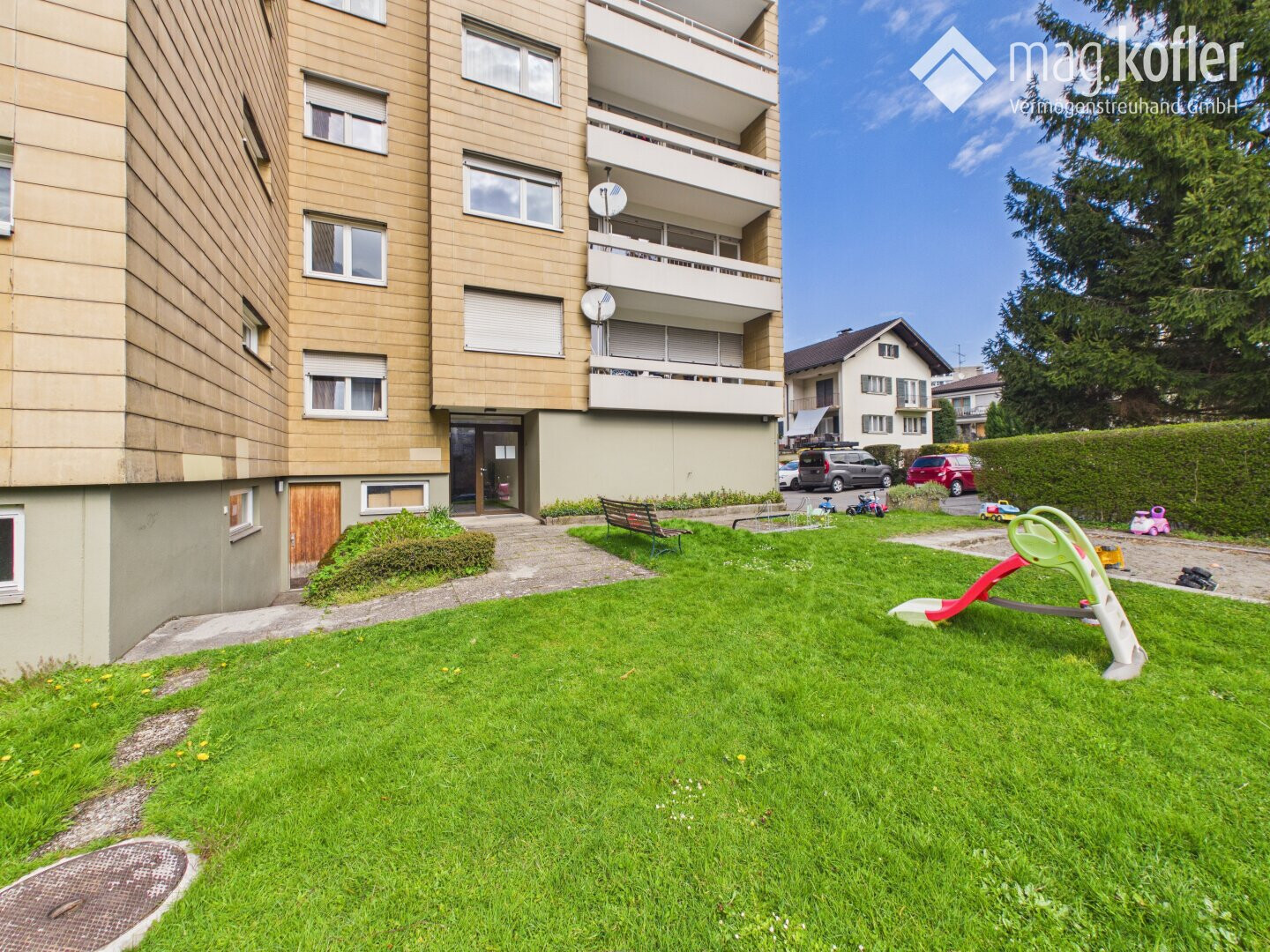 Die Lage überzeugt durch ruhige Wohnstraßen, gute Anbindung an Nahversorgung, Schulen und Freizeitmöglichkeiten und bietet gleichzeitig kurze Wege ins Zentrum von Feldkirch.