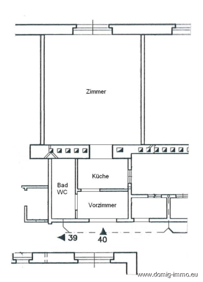 Die revitalisierte Wohnung befindet sich im 5 Stockwerk (ohne Lift). Die Wohnung hat ein Vorraum-Küchenbereich, WC, Bad mit neuer Duschkabine und ein Zimmer.