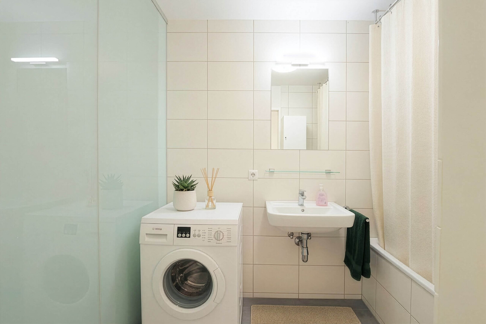 Das Badezimmer und das WC sind getrennt, was zusätzlichen Komfort im Alltag schafft. Hochwertige Haustechnik sorgt für ein angenehmes Wohnklima: Die Wohnung ist mit Wärmepumpe, Fußbodenheizung, einer kontrollierten Be- und Entlüftungsanlage sowie Photovoltaik- und Solaranlage ausgestattet – modern, effizient und nachhaltig.
