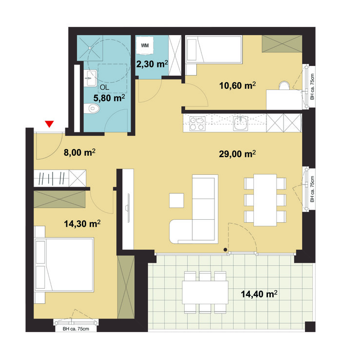 Ausrichtung Balkon: Süden