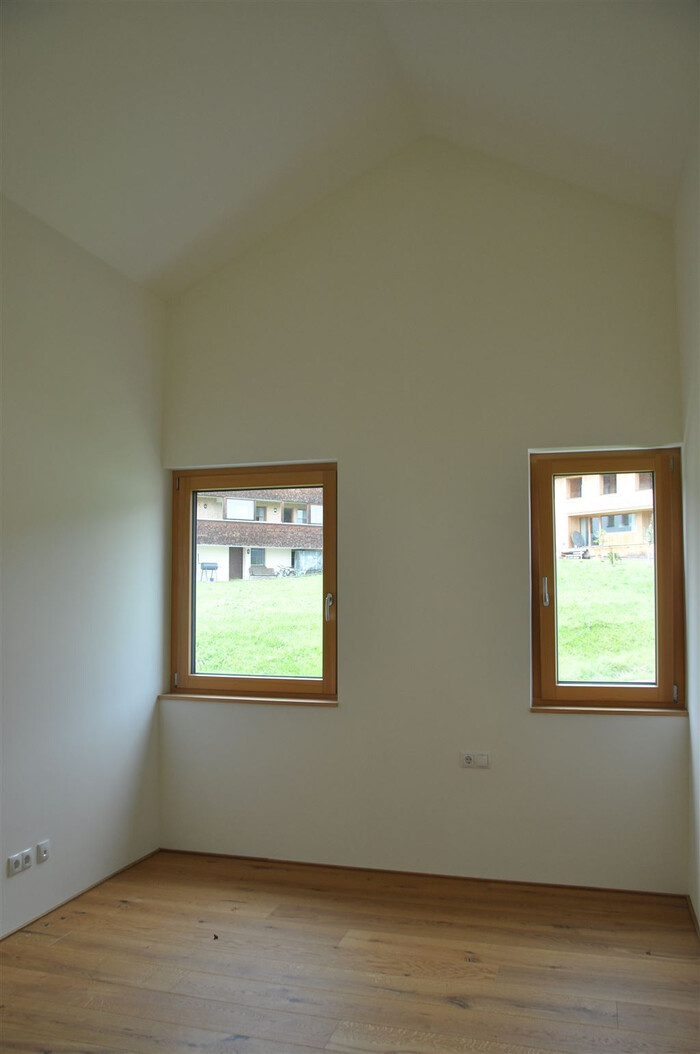 Die Wohnung C19 befindet sich im Dachgeschoss und verfügt über offene Räume bis zum Dachfirst (Raumhöhe ca. 4,5 m). Südseitig ist eine nahezu uneinsehbare Dachloggia mit ca. 10 m² situiert. Von der Loggia können Sie einen wunderbaren Blick Richtung des Bregenzerwälder Hausberges - der Kanisfluh - genießen.