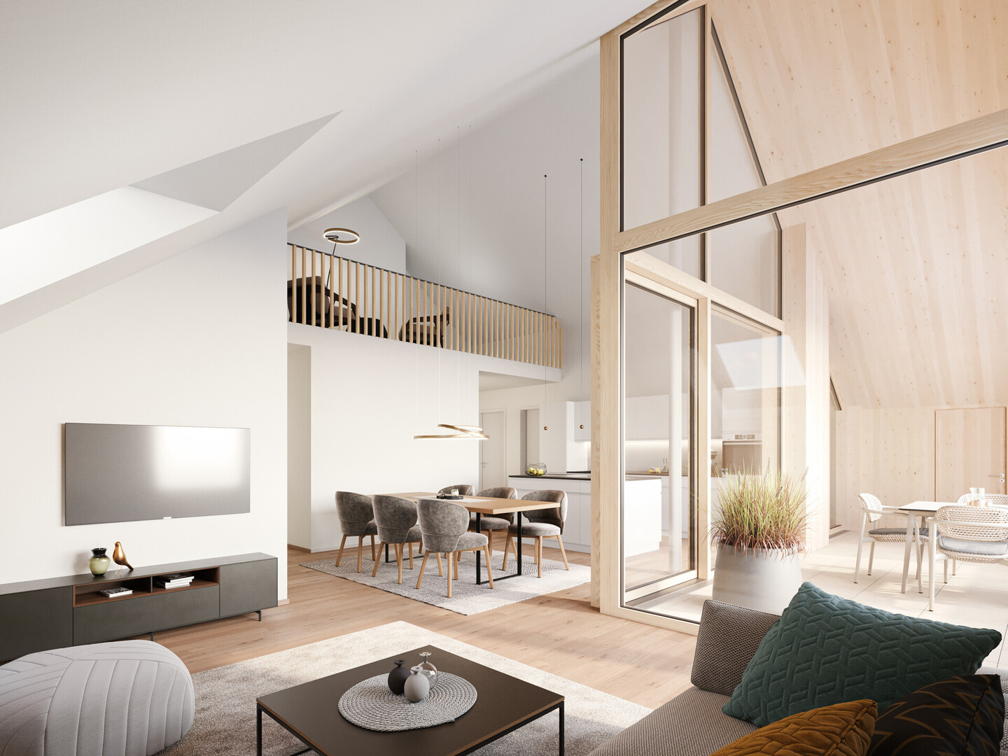 Diese hochwertig ausgebaute 3,5-Zimmer-Dachgeschosswohnung in der neu errichteten Wohnanlage "Bregenzer Straße" wird ab 01.06.2026 bezugsfertig und bietet modernes Wohnen mit ortsüblicher Charakteristik in einer bevorzugten, ruhigen Wohnlage an der ehrwürdigen „Oberen Straße“.