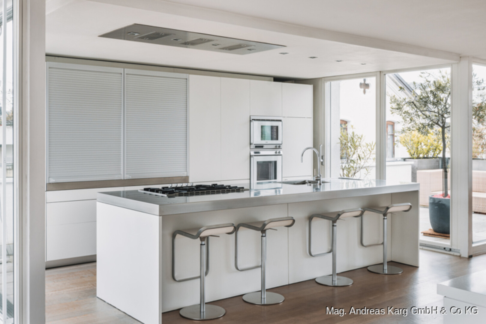 Zwei Terrassen – sonnig, gut nutzbar und mit weitem Blick über die gepflegte Umgebung – bieten ideale Voraussetzungen für entspannte Stunden im Freien, gesellige Abende oder Rückzug ins Private. Große Fensterflächen holen viel Licht in die Wohnräume und verbinden Innen- und Außenbereiche zu einer harmonischen Einheit.