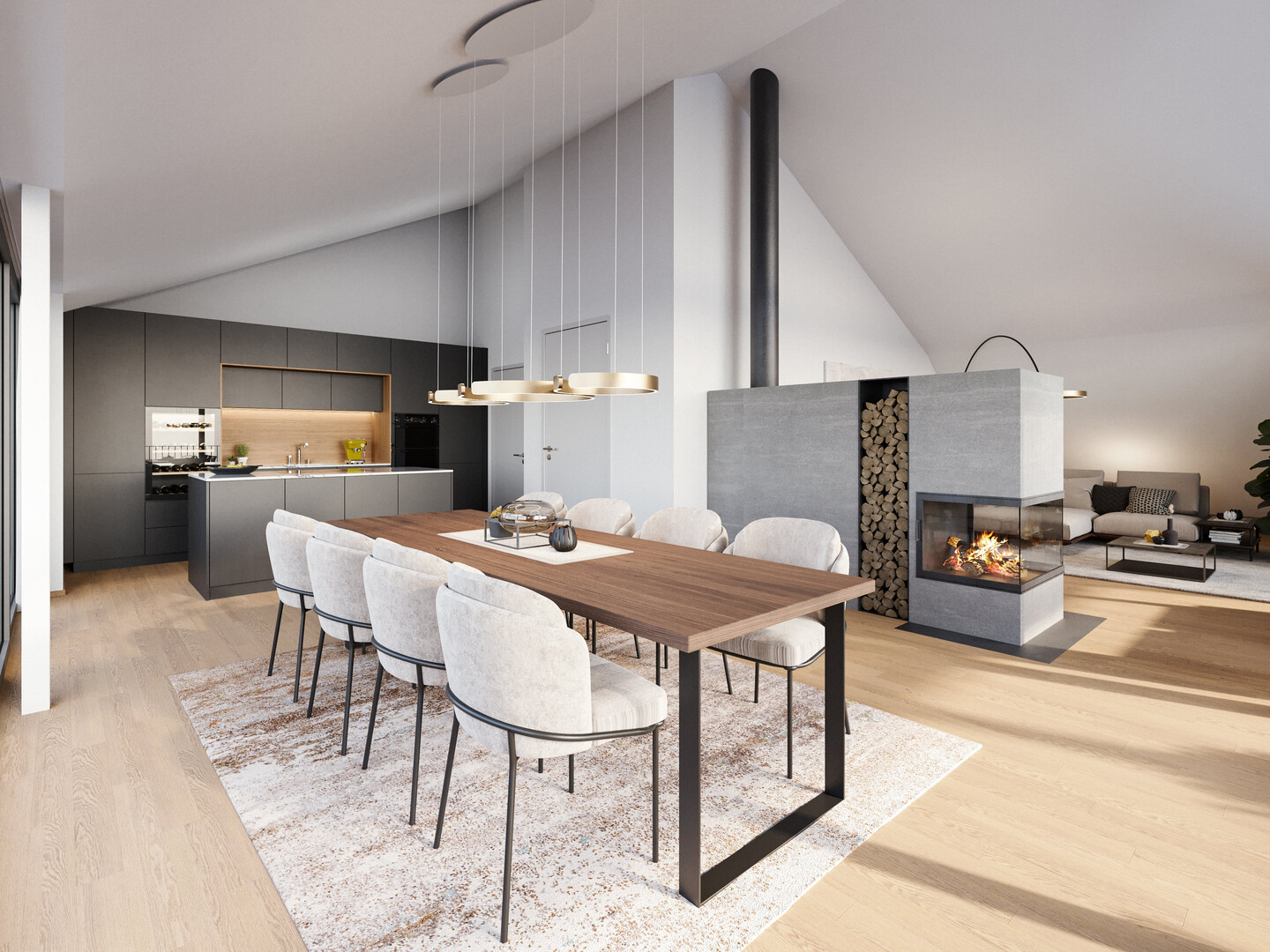 Hier wächst das Leben mit. Drei Zimmer bieten genug Raum für Familie, Gäste oder Hobbys. Der große Wohnbereich öffnet sich zur Terrasse, die nicht nur zum Essen im Freien einlädt, sondern auch an warmen Sommerabenden zum Lieblingsplatz wird.