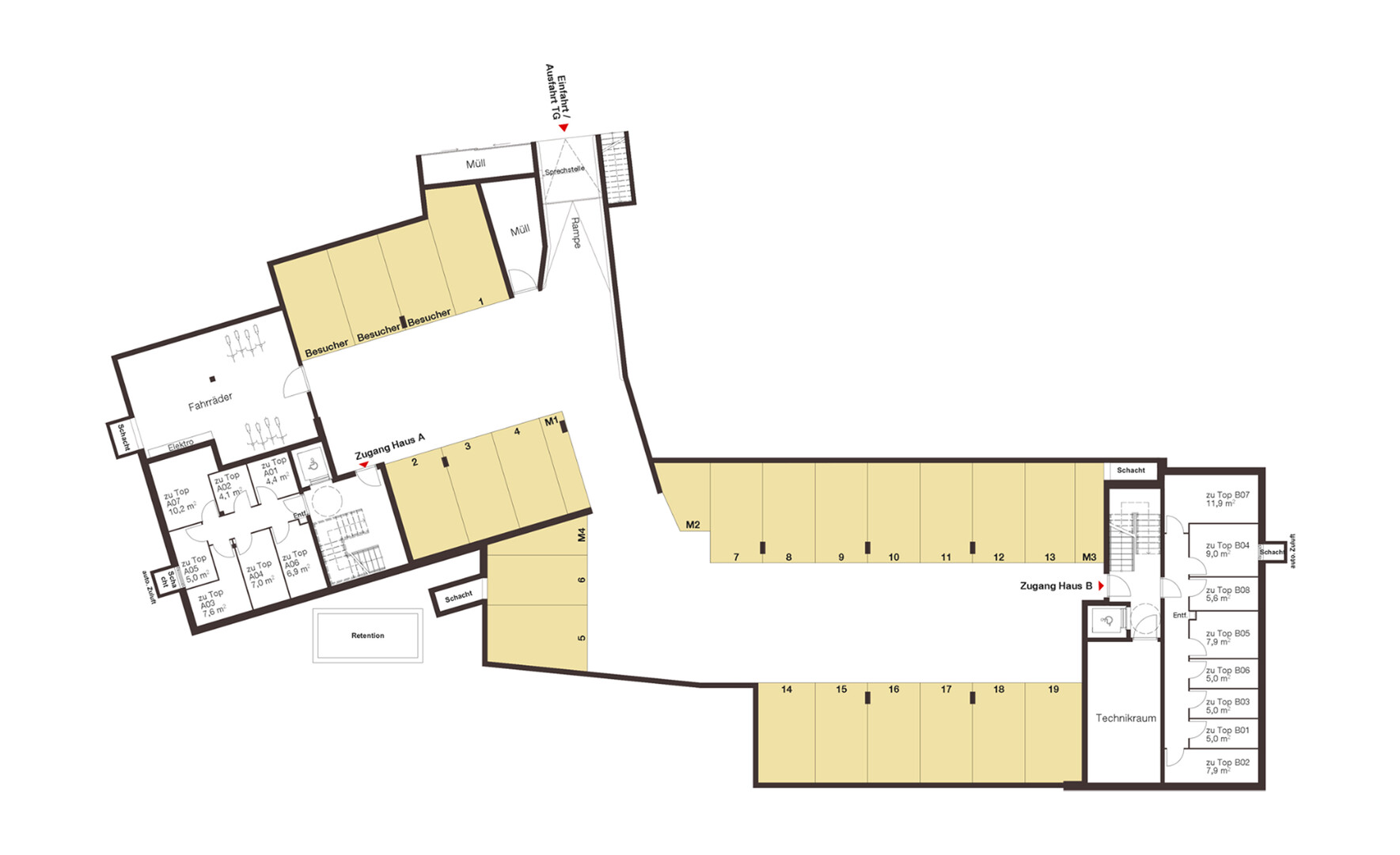 - Pro Gebäude 7 bzw. 8 Wohnungen