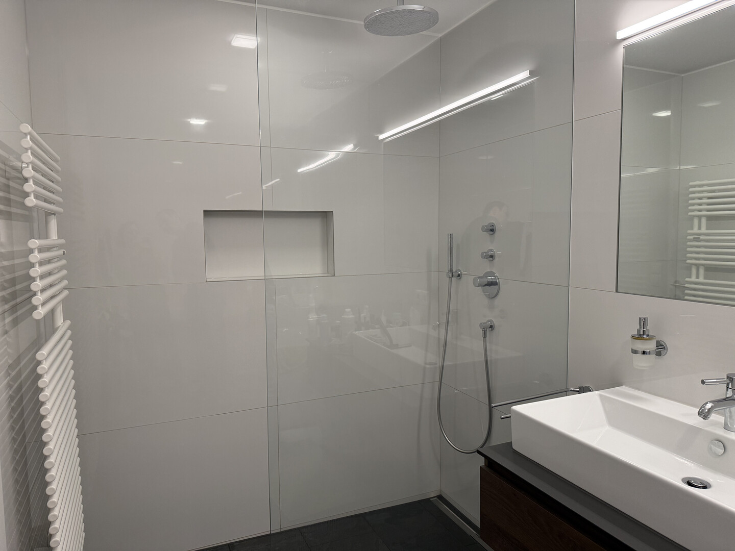 - Badezimmer mit großzügiger Dusche und Badewanne