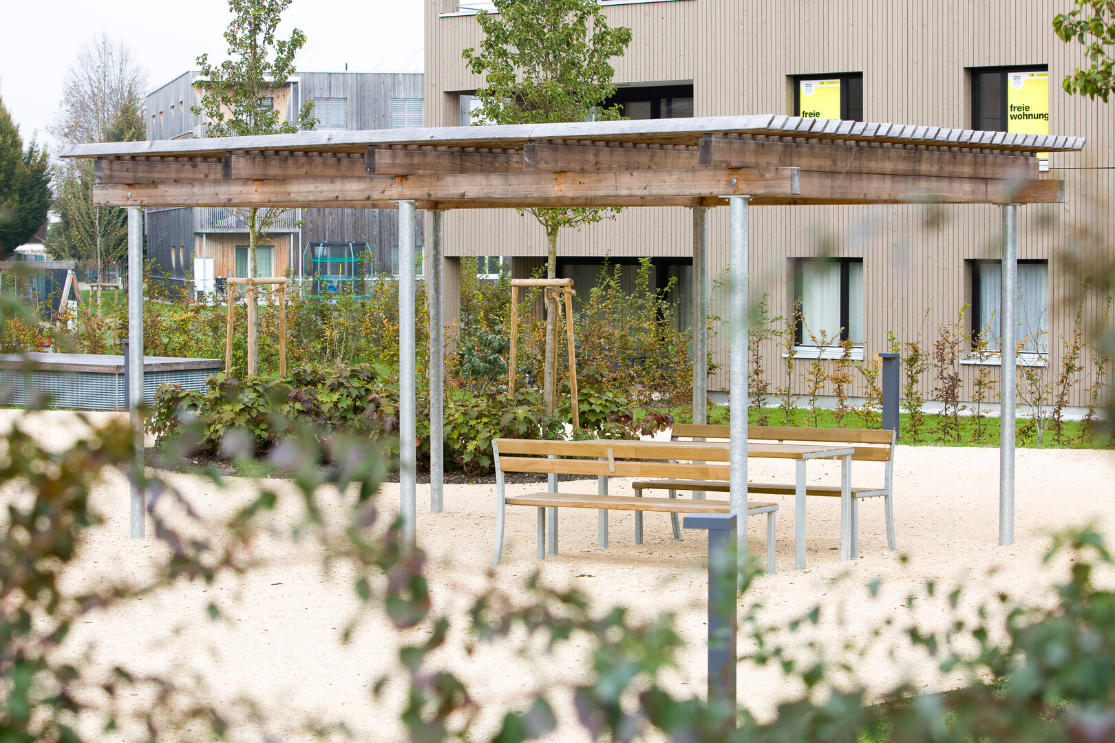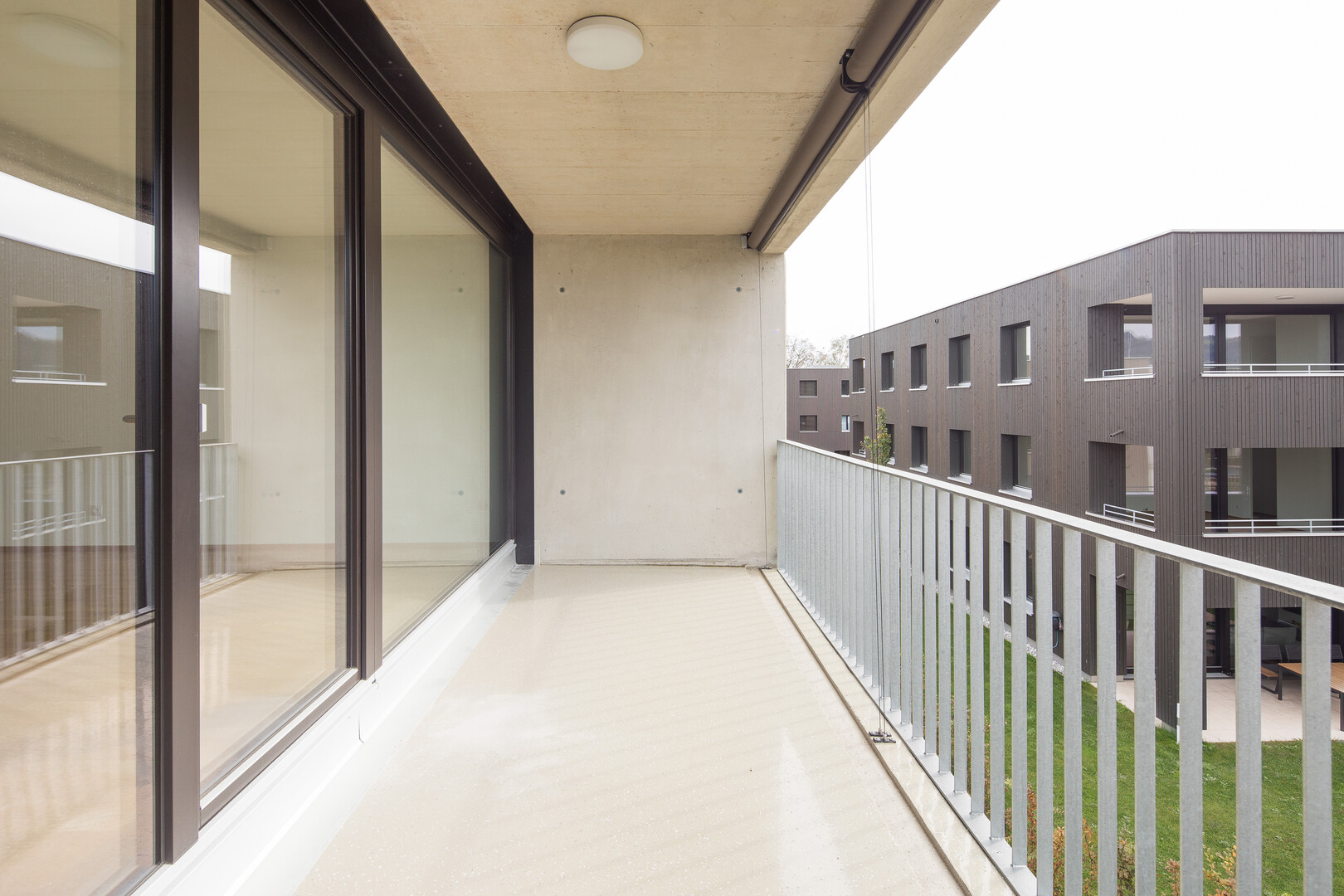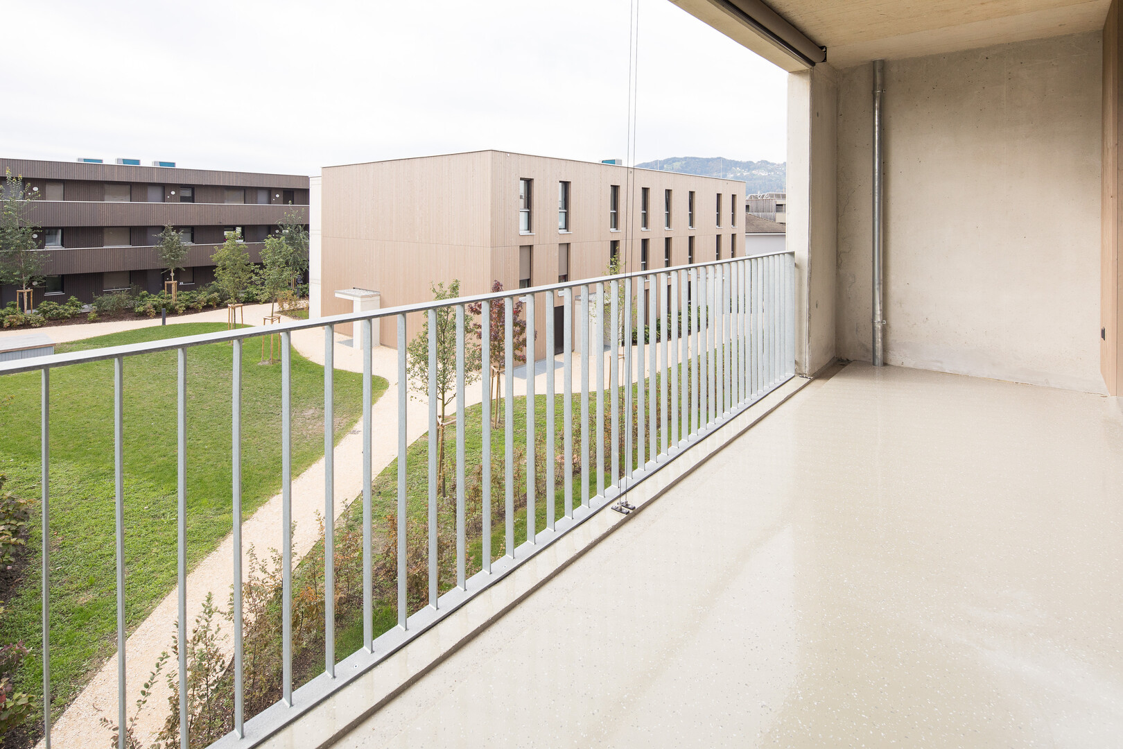 Sonnige Wohnqualität: Die überdachte Terrasse dieser Obergeschosswohnung schafft ein geschütztes Outdoor-Wohnzimmer, das zu jeder Jahreszeit genutzt werden kann. Genießen Sie die Aussicht und das helle, offene Wohnkonzept.