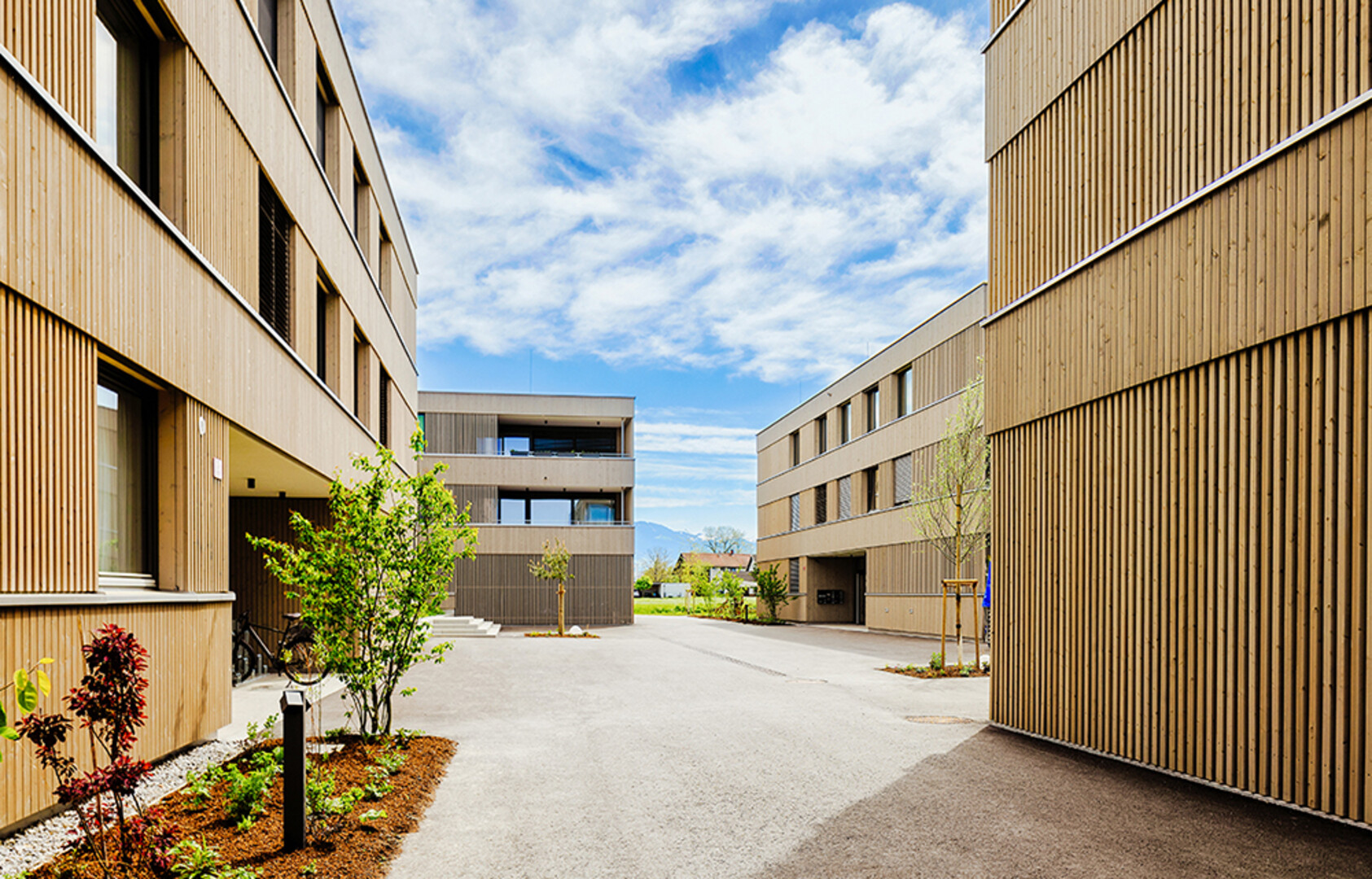 Das bereits fertiggestellte Projekt Liebera in Fußach vereint auf eindrucksvolle Weise jene Aspekte, die pure Lebensfreude versprechen. Durch die Setzung der vier Baukörper wurden die Räume um und zwischen den Wohnhäusern in wahre Ruheoasen verwandelt. Die Außenraumgestaltung verschafft den Bewohnern ein herrliches Wohngefühl. Wohltuende Gelassenheit hält auch auf den großen Terrassen Einzug und zieht sich weiter ins Innere der variantenreichen Wohnungen. Die Holzfassade verleiht den Baukörpern, die durch ihre klare Formensprache bestechen, ein behagliches Wohlfühlambiente.