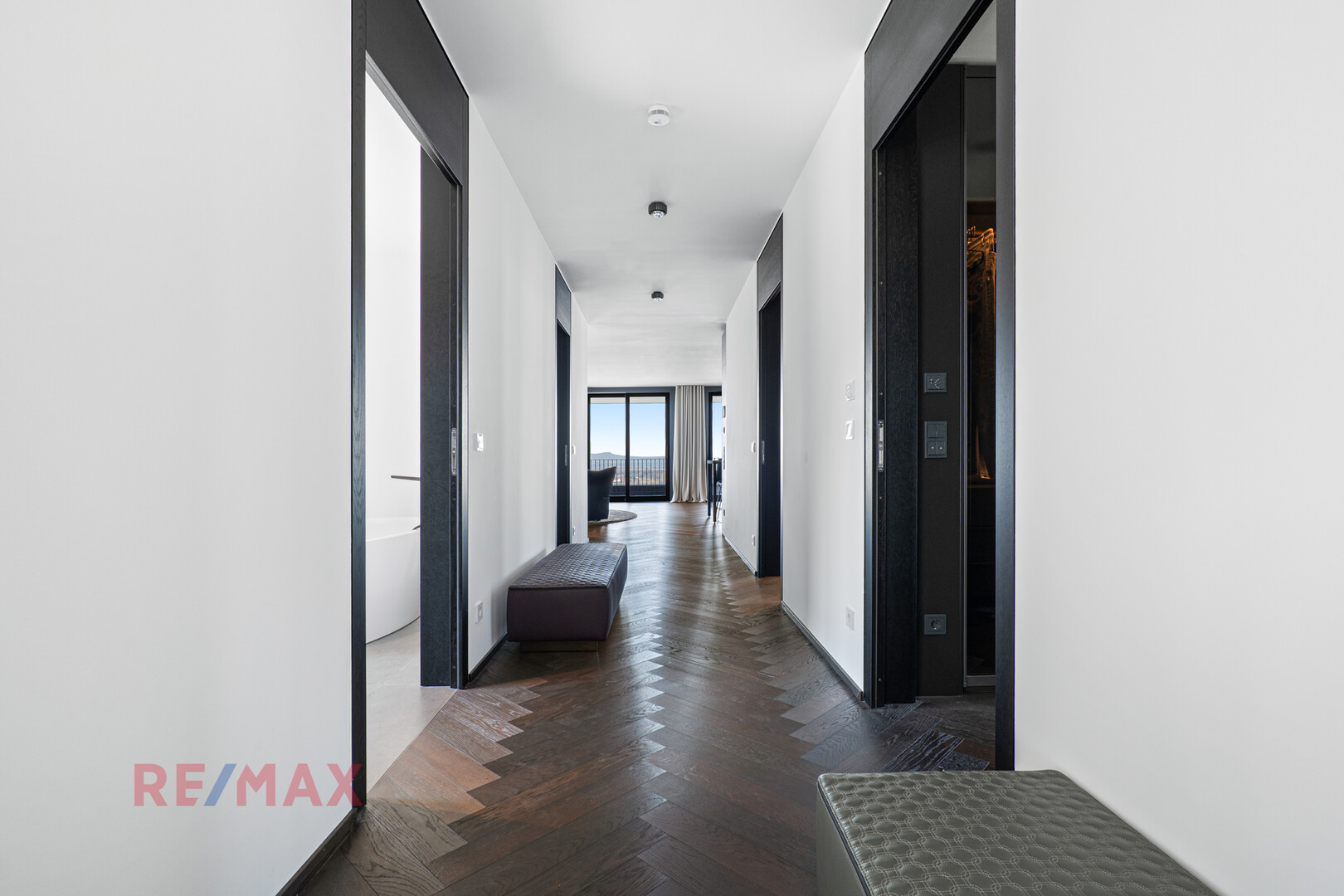 Große, lichtdurchflutete Räume, ein eigenes Ankleidezimmer und eine großzügige Terrasse unterstreichen den Anspruch an Raum und Privatsphäre.