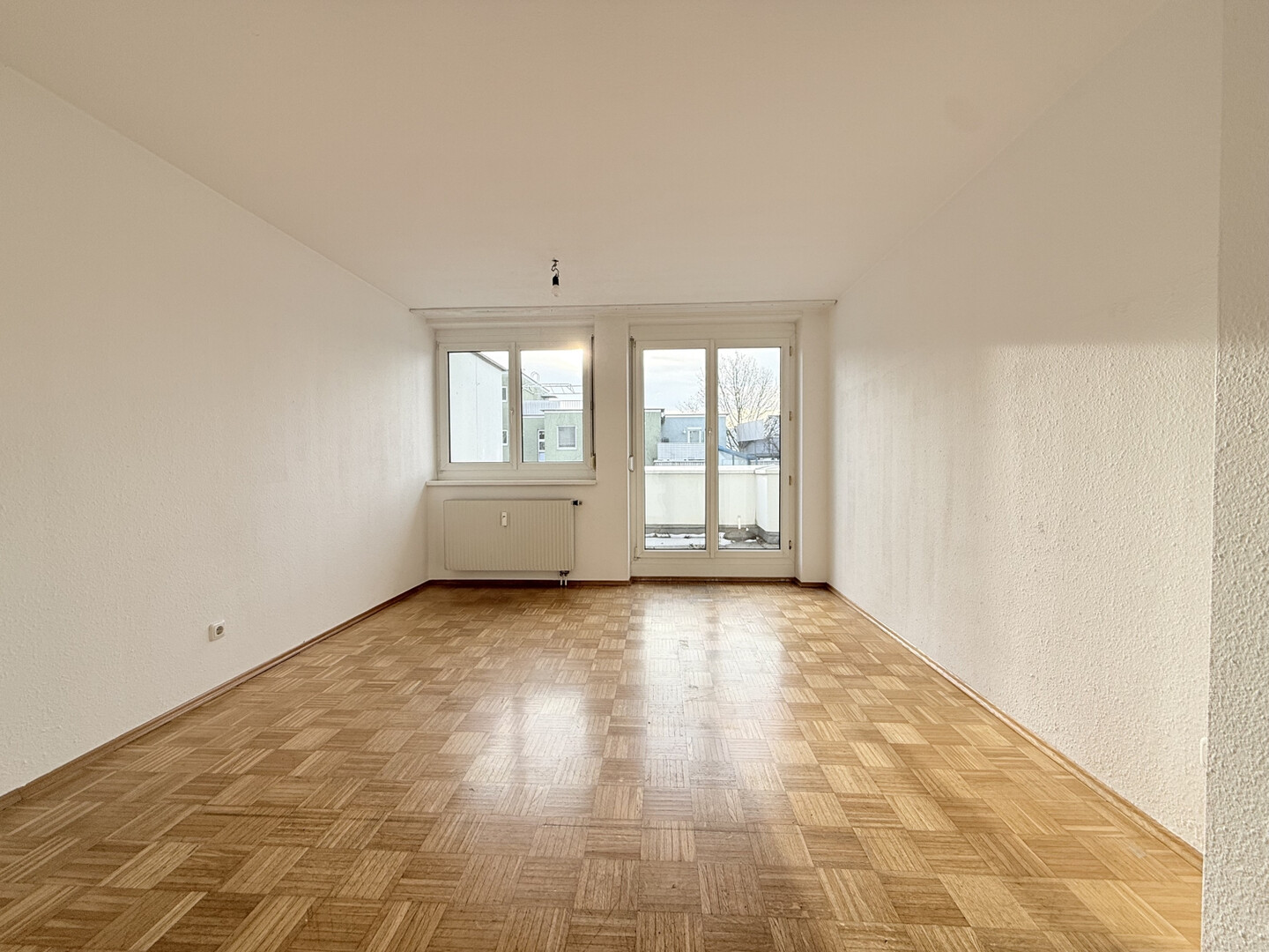Das Schlafzimmer ist ruhig gelegen und bietet ausreichend Platz für ein Doppelbett sowie einen geräumigen Kleiderschrank. Das Badezimmer ist funktional gestaltet und mit allen notwendigen Sanitäreinrichtungen ausgestattet. Die zentrale Gasheizung sorgt ganzjährig für angenehme Temperaturen und ein behagliches Wohngefühl.