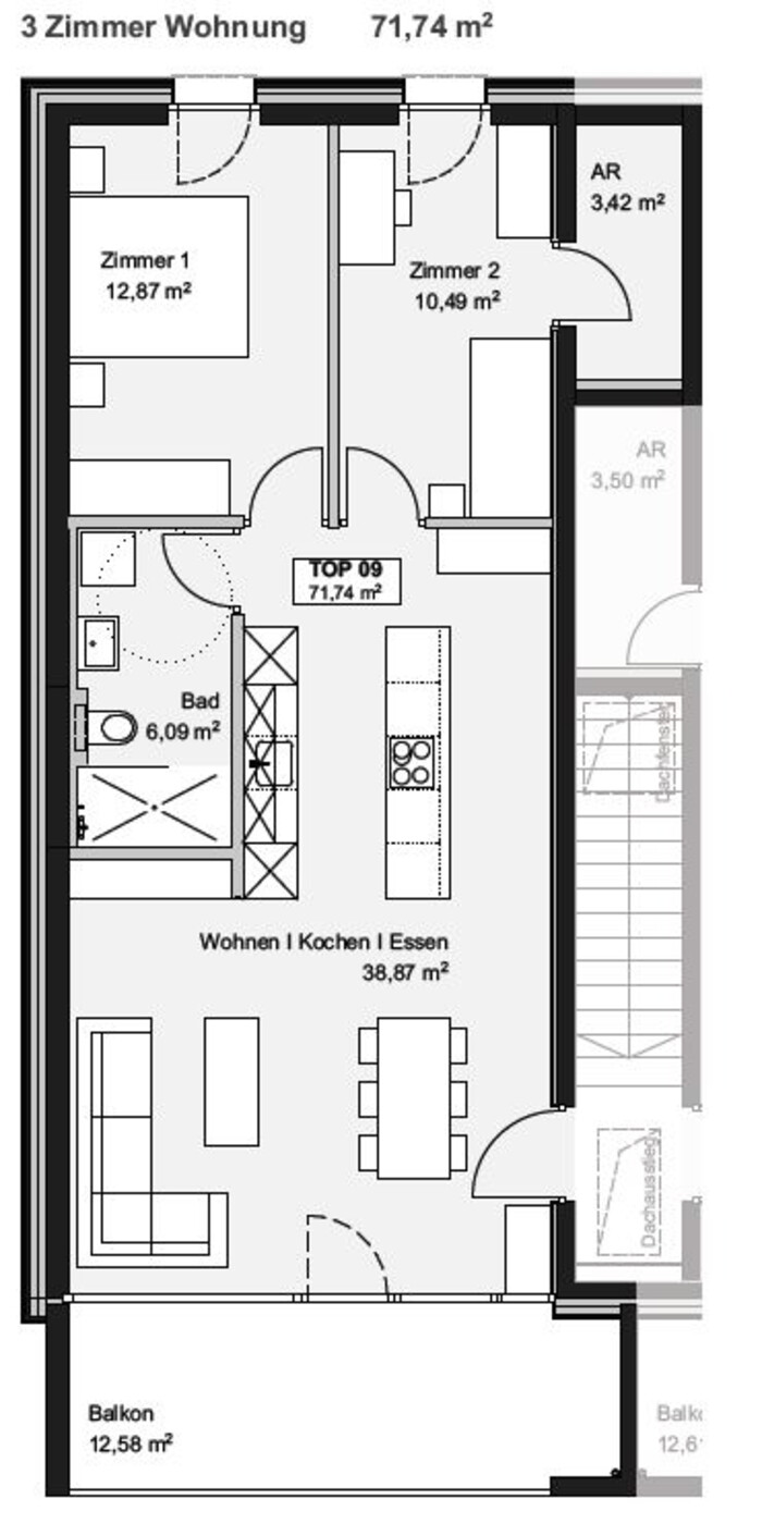 3-Zimmer-Dachgeschosswohnung mit Ausblick | Whg D09