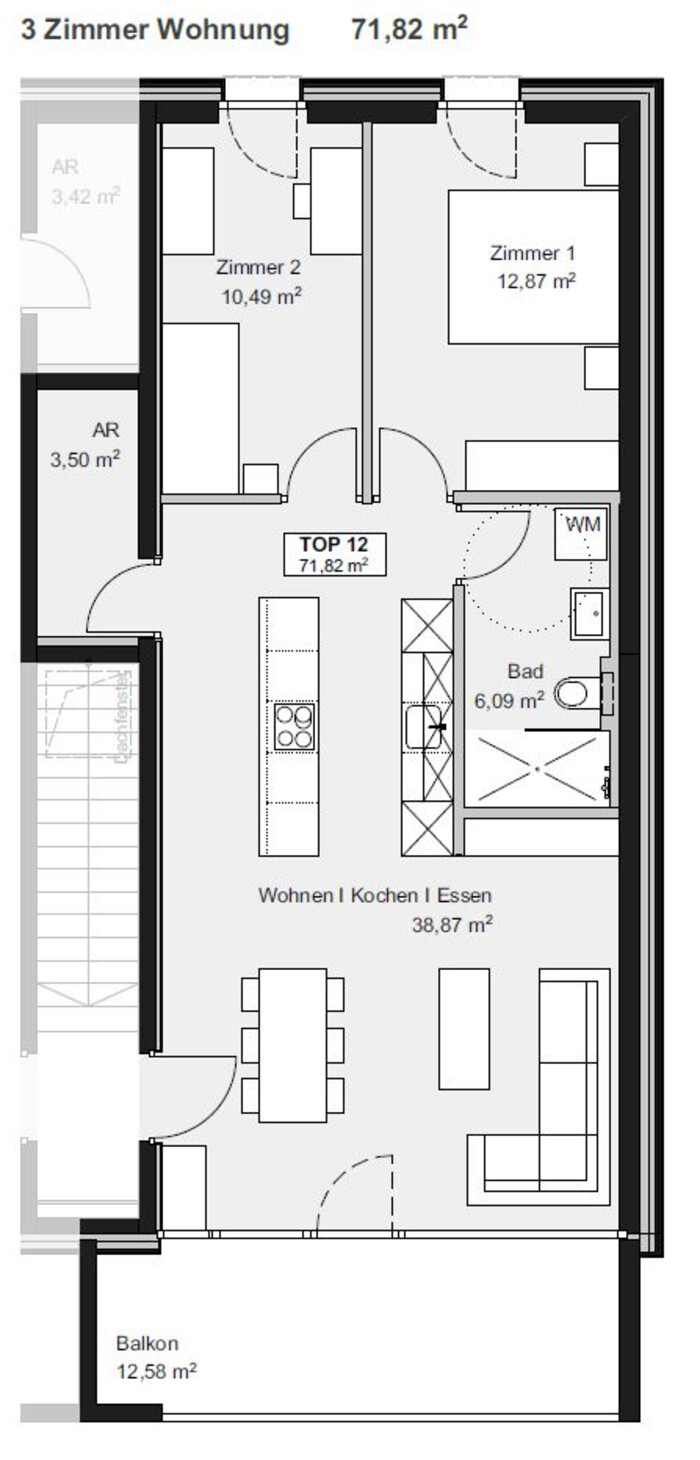 Attraktive 3-Zimmer-Dachgeschosswohnung mit Ausblick