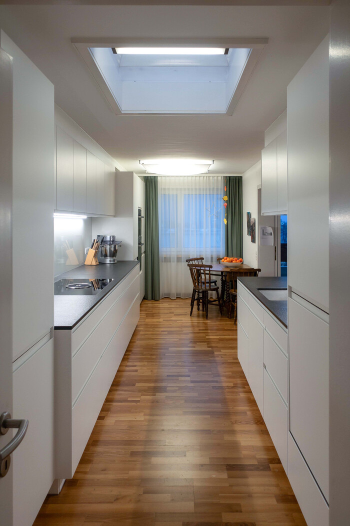 Im Zuge der umfassenden Kernsanierung wurden Parkettböden, Elektrik, Küche, beide Badezimmer sowie sämtliche Einbauten vollständig erneuert. Zwei stilvoll gestaltete Badezimmer mit hochwertigen Fliesen, eine moderne Einbauküche mit Qualitätsgeräten sowie maßgefertigte Tischler-Einbauten unterstreichen den hochwertigen Charakter der Wohnung.