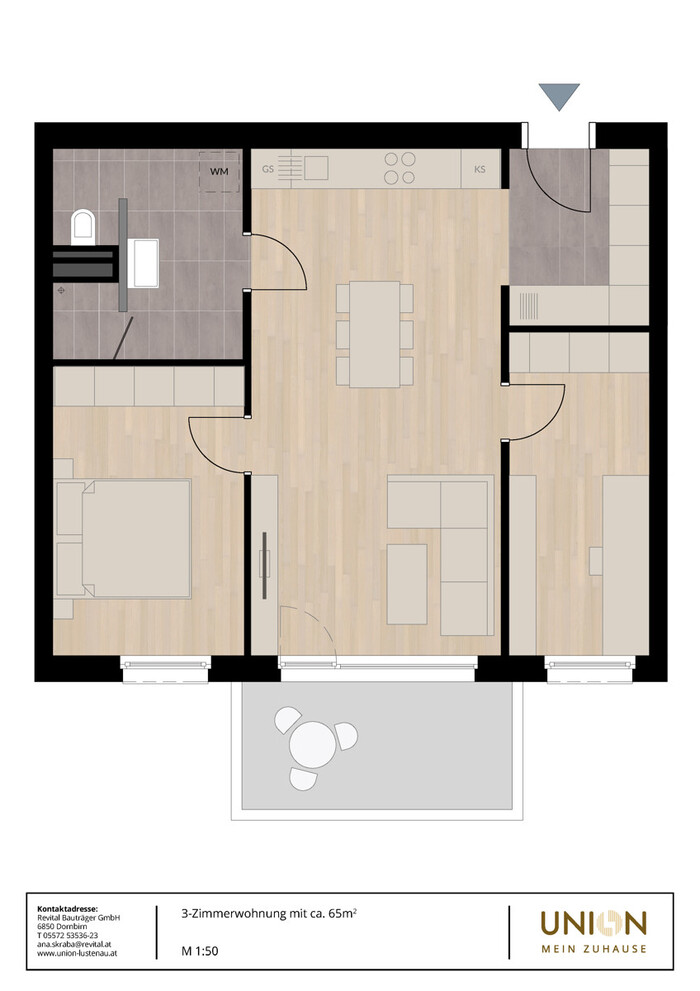 Schöne, helle 3-Zimmer-Wohnung in der Wohnanlage UNION in Lustenau zu vermieten.