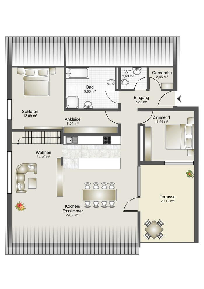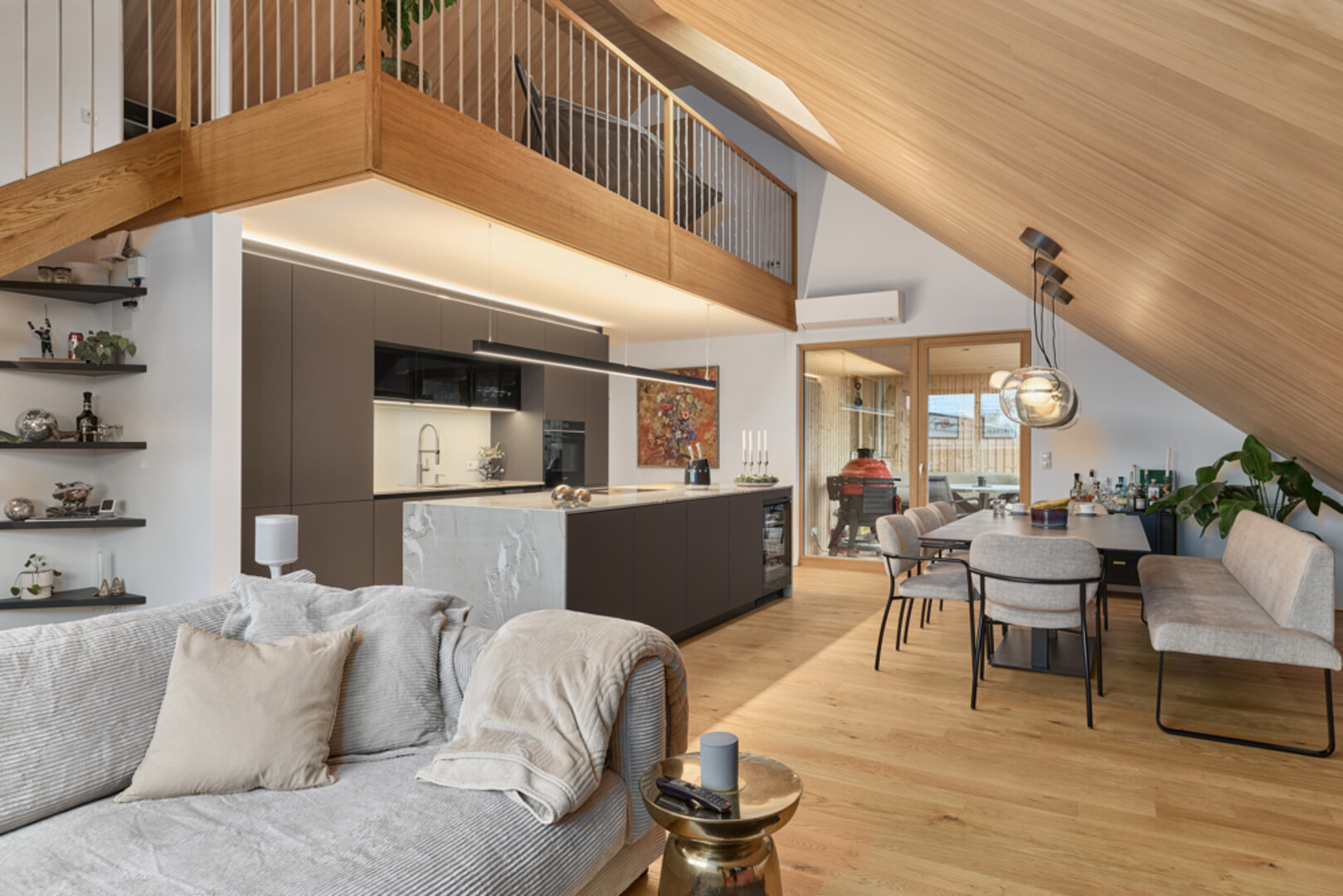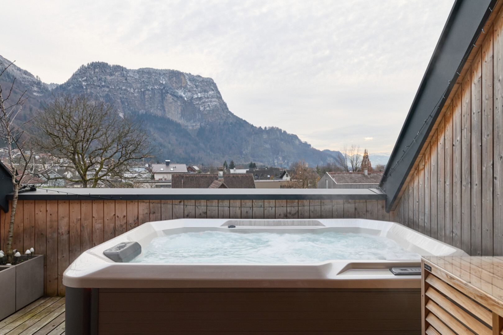 In der Hinteren Achmühlerstrasse erwartet Sie ein ganz besonderes Zuhause – keine Standardwohnung, sondern ein Wohntraum für Individualisten mit hohen Ansprüchen an Design, Komfort und Qualität. Von außen präsentiert sich die charmante Kleinwohnanlage im Stil eines liebevoll modernisierten Bauernhauses. Innen überzeugt die Wohnung mit einem harmonischen Mix aus alpinem Wohngefühl und modernem Design. Edle Holzelemente, offene Dachschrägen, eine maßgeschneiderte Designerküche und ein Badezimmer wie aus der Architekturzeitschrift schaffen eine außergewöhnliche Atmosphäre. Eines der vielen Highlights ist die ca. 20 m² große Loggia mit Whirlpool – mit herrlichem Blick auf den Karren. Hier lässt sich Entspannung auf höchstem Niveau genießen.