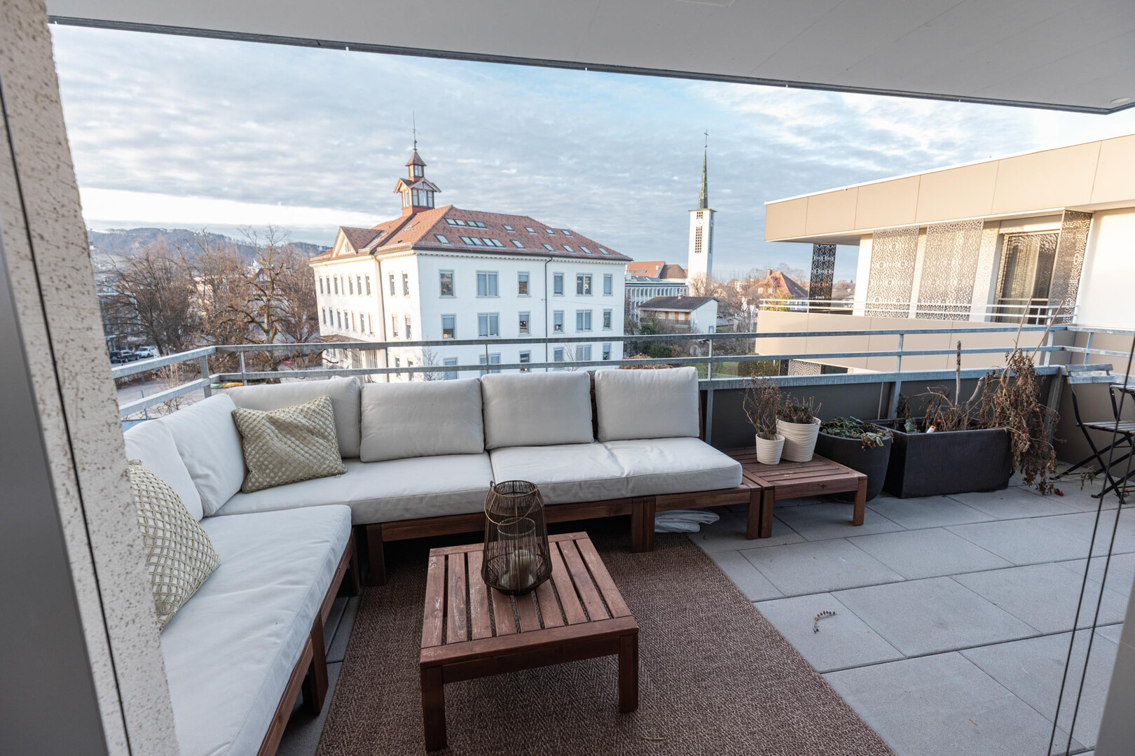 Für einen weiteren Pluspunkt sorgt die ca. 17,9 m² große Dachterrasse. Mit Blick auf die Schweizer Berge lassen sich hier herrliche Sommerabende verbringen.