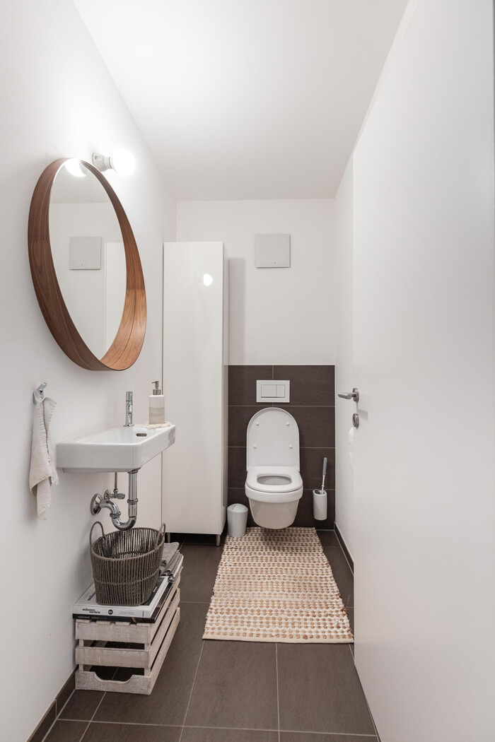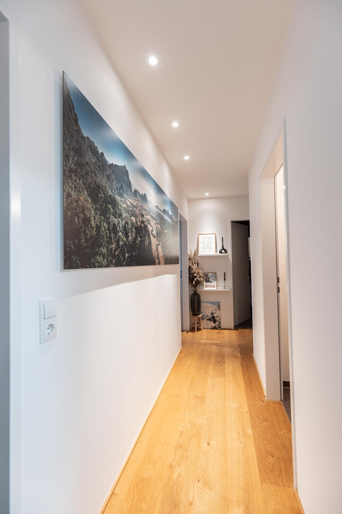 Die Wohnung besticht durch ihre moderne, langlebige Bauqualität: dreifach verglaste Kunststoff-Alu-Fenster, nachhaltiger Wärmeschutz, hochwertige Böden und ein stimmiges Farb- und Materialkonzept ziehen sich durch alle Räume Wohndetails.