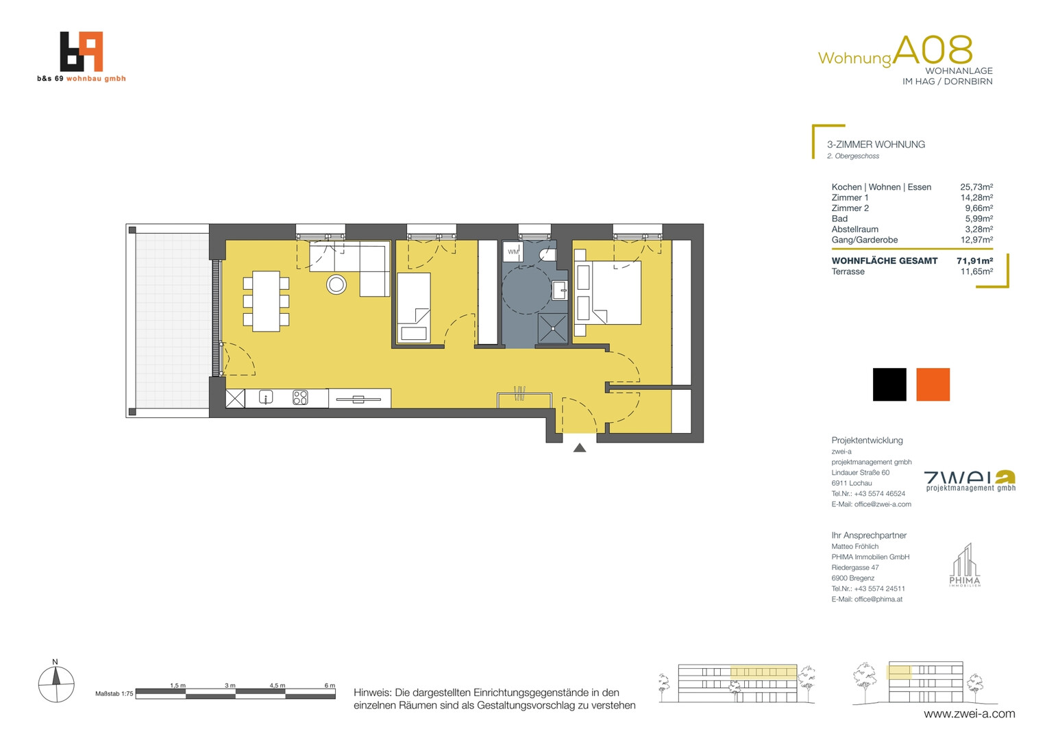 Die Wohnanlage im Hag, bestehend aus zwei Baukörpern und einer gemeinsamen Tiefgarage, ist nach Süden bzw. Westen ausgerichtet. Mit insgesamt 19 Wohneinheiten, verteilt auf zehn Einheiten im Haus A und neun Einheiten im Haus B, wird hier der Traum des Eigenheims in Zentrumsnähe wahr.