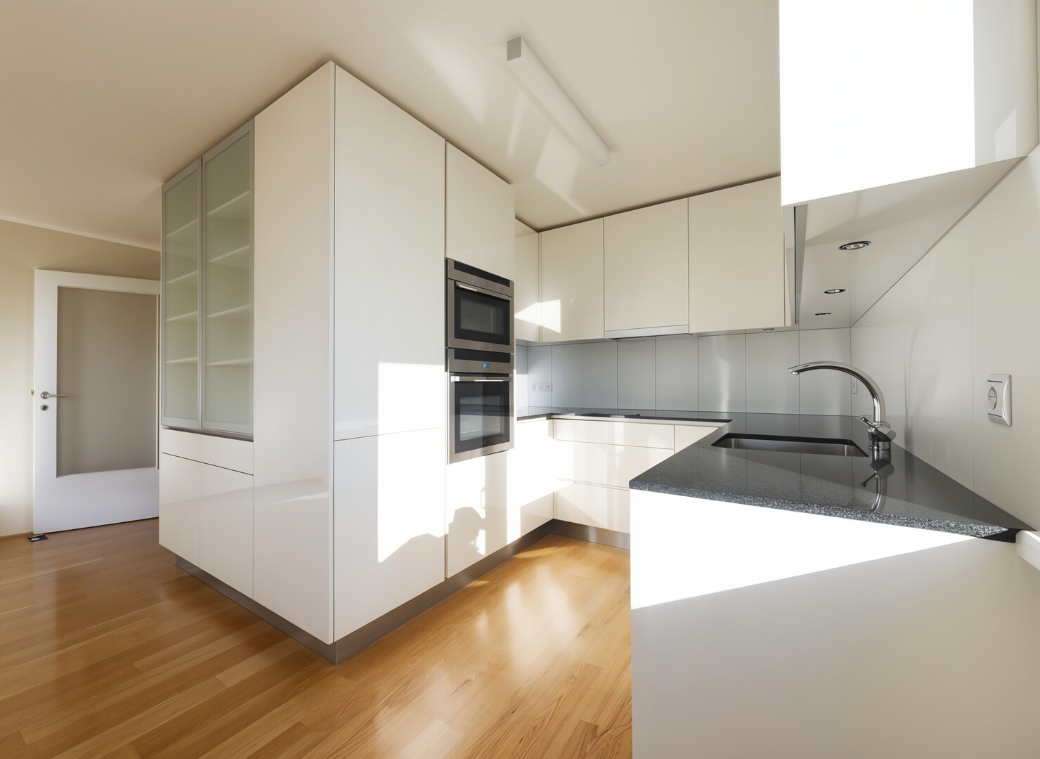 moderne Einbauküche mit Echtsteinarbeitsplatte