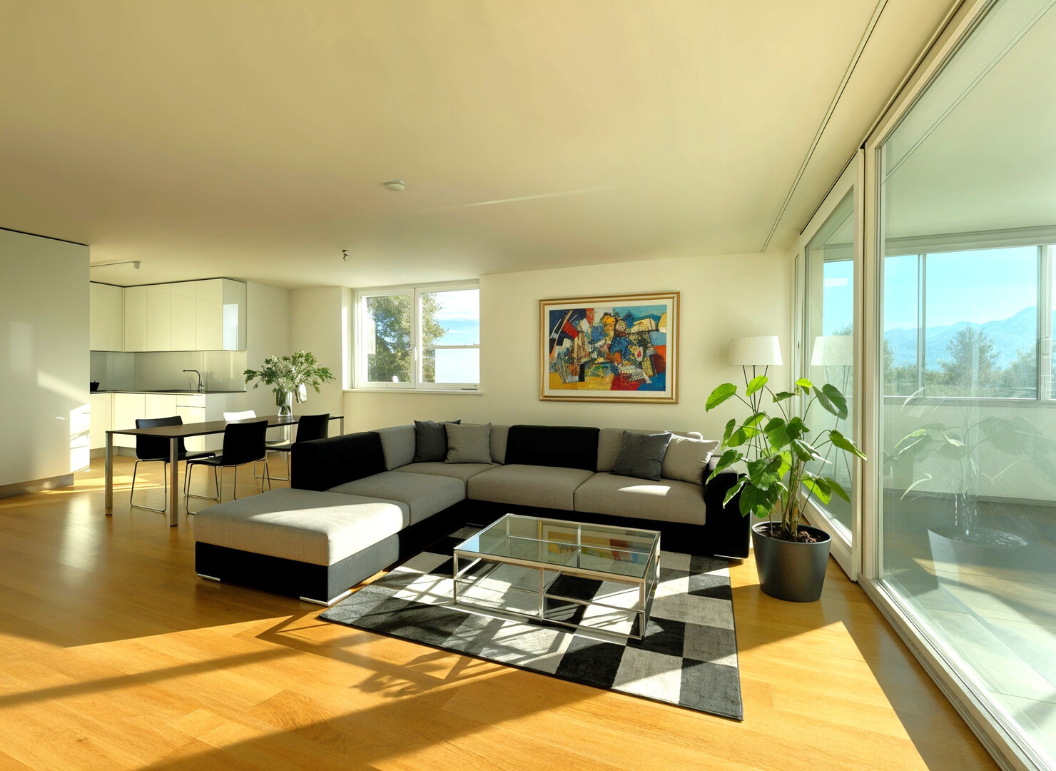 offener Wohn-Essbereich mit viel natürlichem Licht