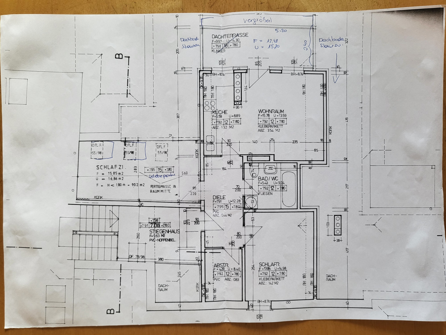 Zur Wohnung gehören auch noch ein Kellerabteil, 2 kleine Dachbodenräume sowie ein Tiefgaragenstellplatz.
