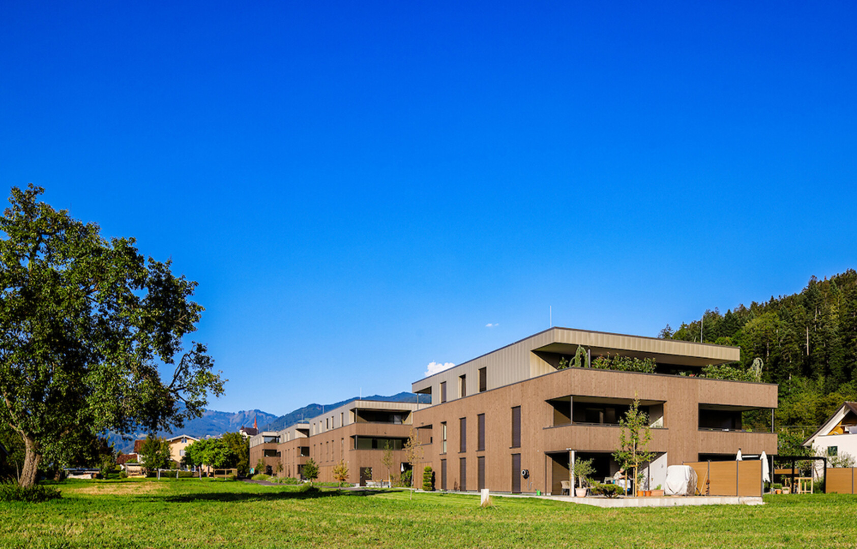 Das bereits fertiggestellte Neubauprojekt Pfäfersweg besteht aus vier Baukörpern mit jeweils nur wenigen Wohnungen. Die Lage am Ortsrand von Rankweil nahe Wald und Wiesen verspricht eine ruhige und entspannte Wohnatmosphäre. Gleichzeitig ist das Zentrum der Gemeinde, die Autobahn und der Bahnhof Rankweil schnell erreicht.