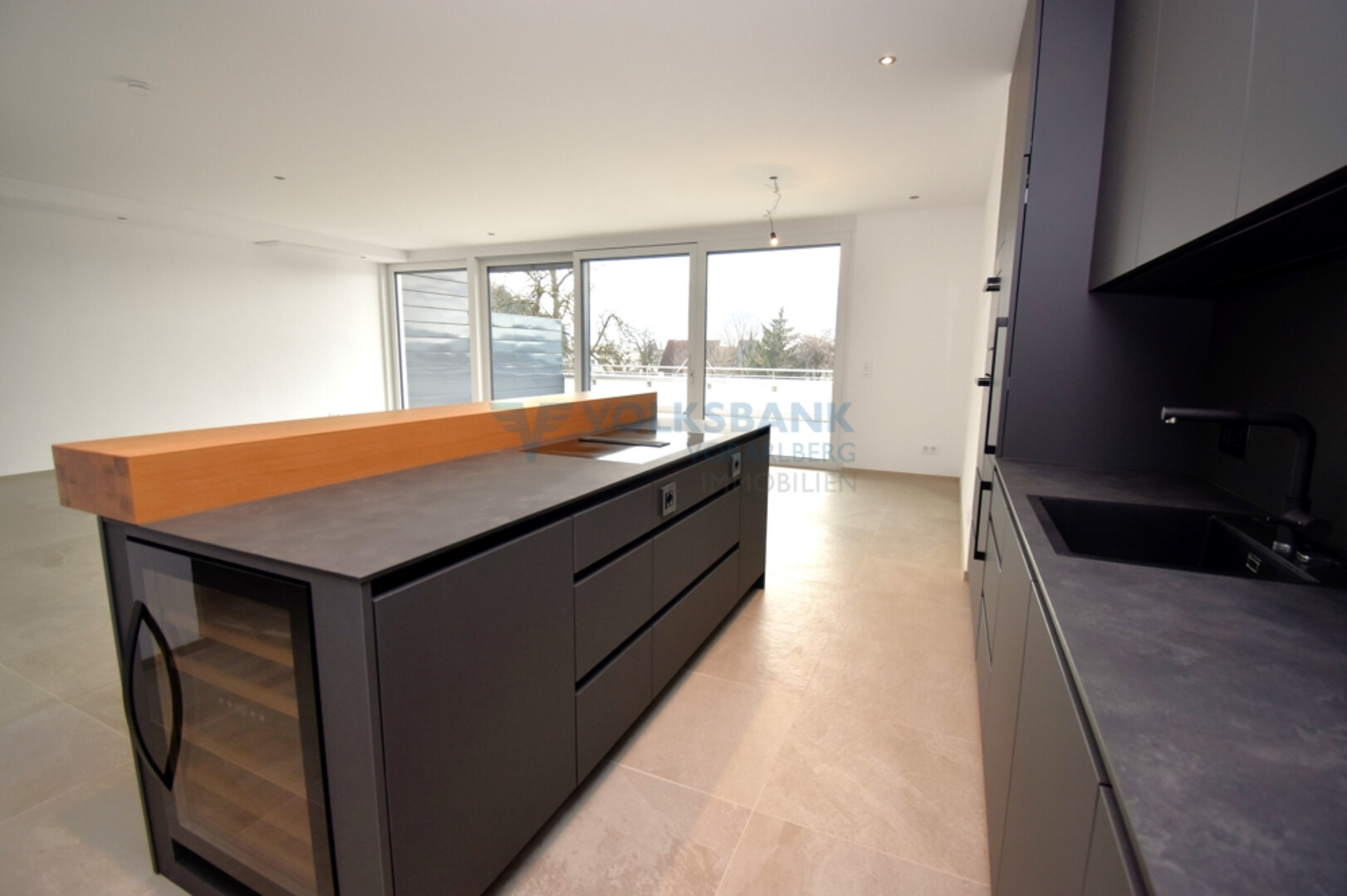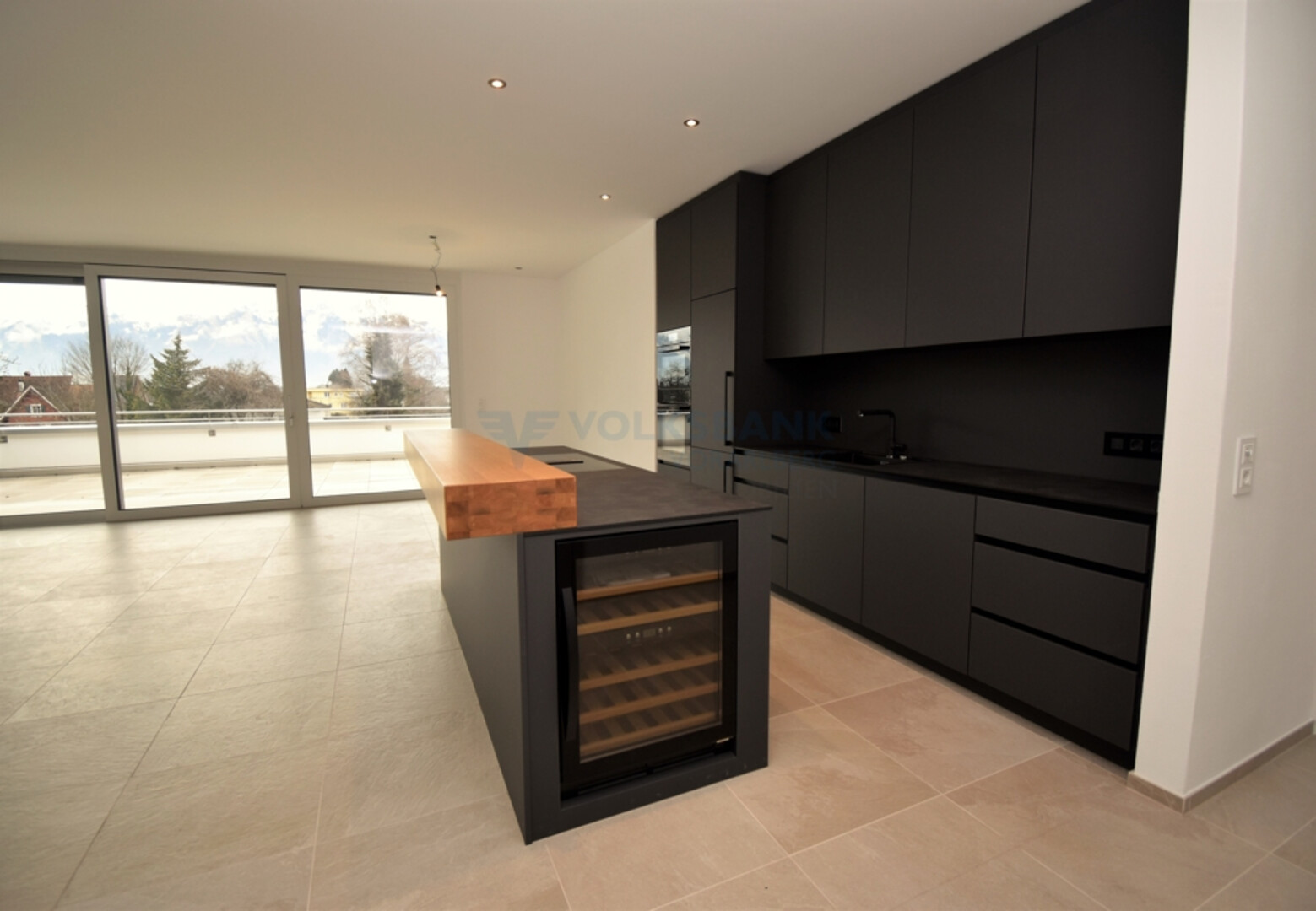 Das lichtdurchflutete, klimatisierte Wohnzimmer mit eleganter Einbauküche inkl. Weinkühler machen es zu etwas ganz Besonderem. Hier genießen Sie bereits zum Frühstück einen traumhaften Ausblick auf die umliegende Bergwelt. Das gesamte Prachtexemplar ist mit hochwertigen Materialien und Einbauten ausgestattet.