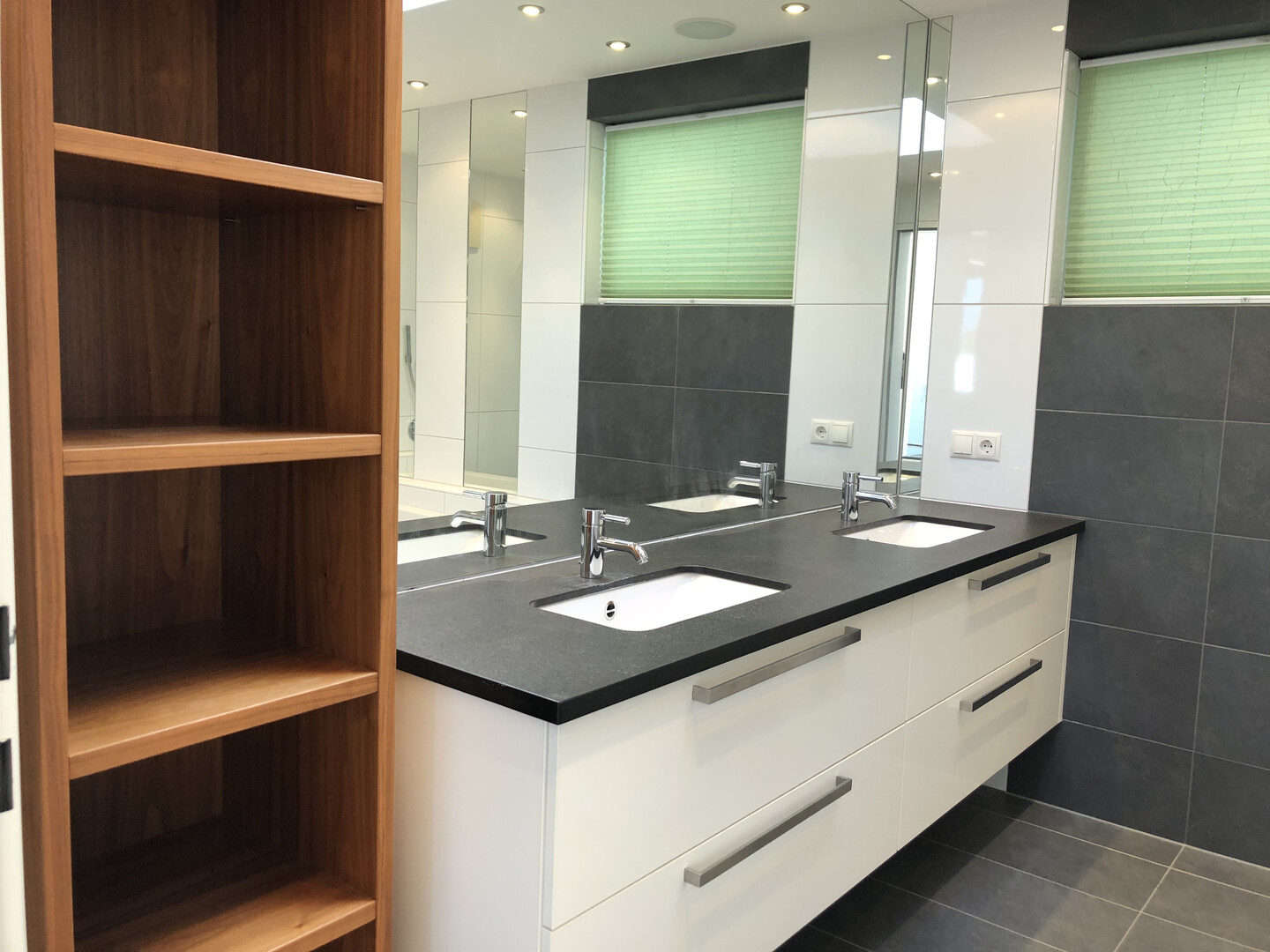 Highlight ist die ca. 27 m² große Südwest-Terrasse mit drei elektrisch steuerbaren Markisen – ideal für entspannte Stunden im Freien.