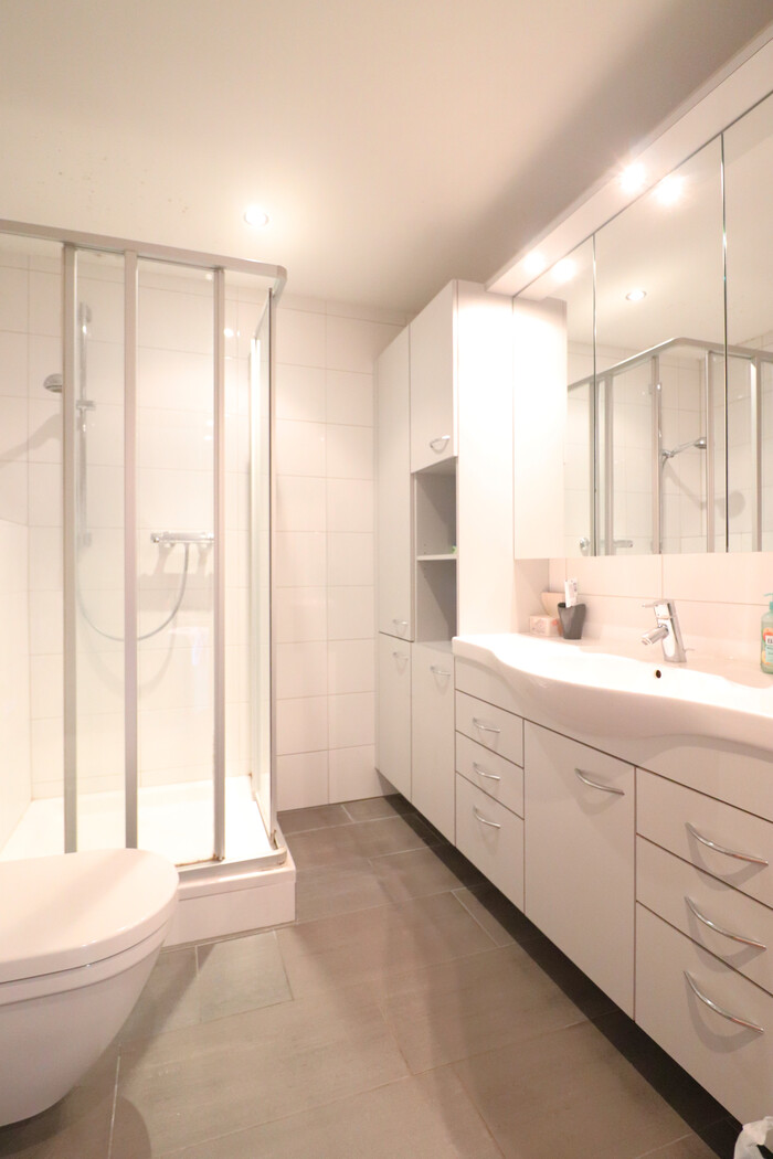 - schöner Parkett Boden in den Wohn- und Schlafräumen, Fliesenböden in den Sanitärräumen