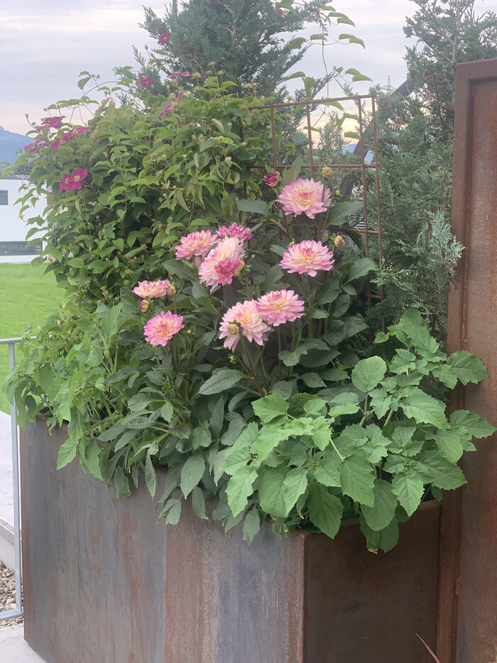 Die Dachgeschosswohnung verfügt über eine geräumige Terrasse (ca 65 m2) inkl. Hochbeet. Sie bietet einen atemberaubenden Blick auf die schweizer Berge.
