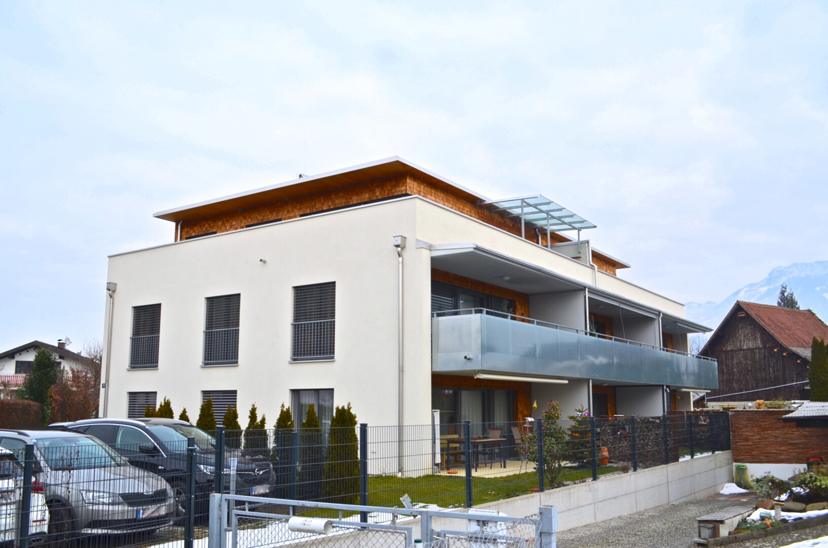 Das vom Architekten geplante Wohnhaus mit nur 8 Einheiten wurde durch die Firma Fussenegger im Jahre 2014 in Altach in der Rheinstraße fertiggestellt.