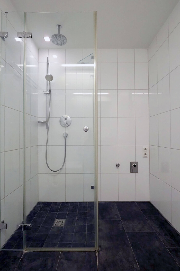 Der freundliche Eingangsbereich heißt Sie herzlich willkommen und bietet ein modernes Gäste-WC mit Dusche.