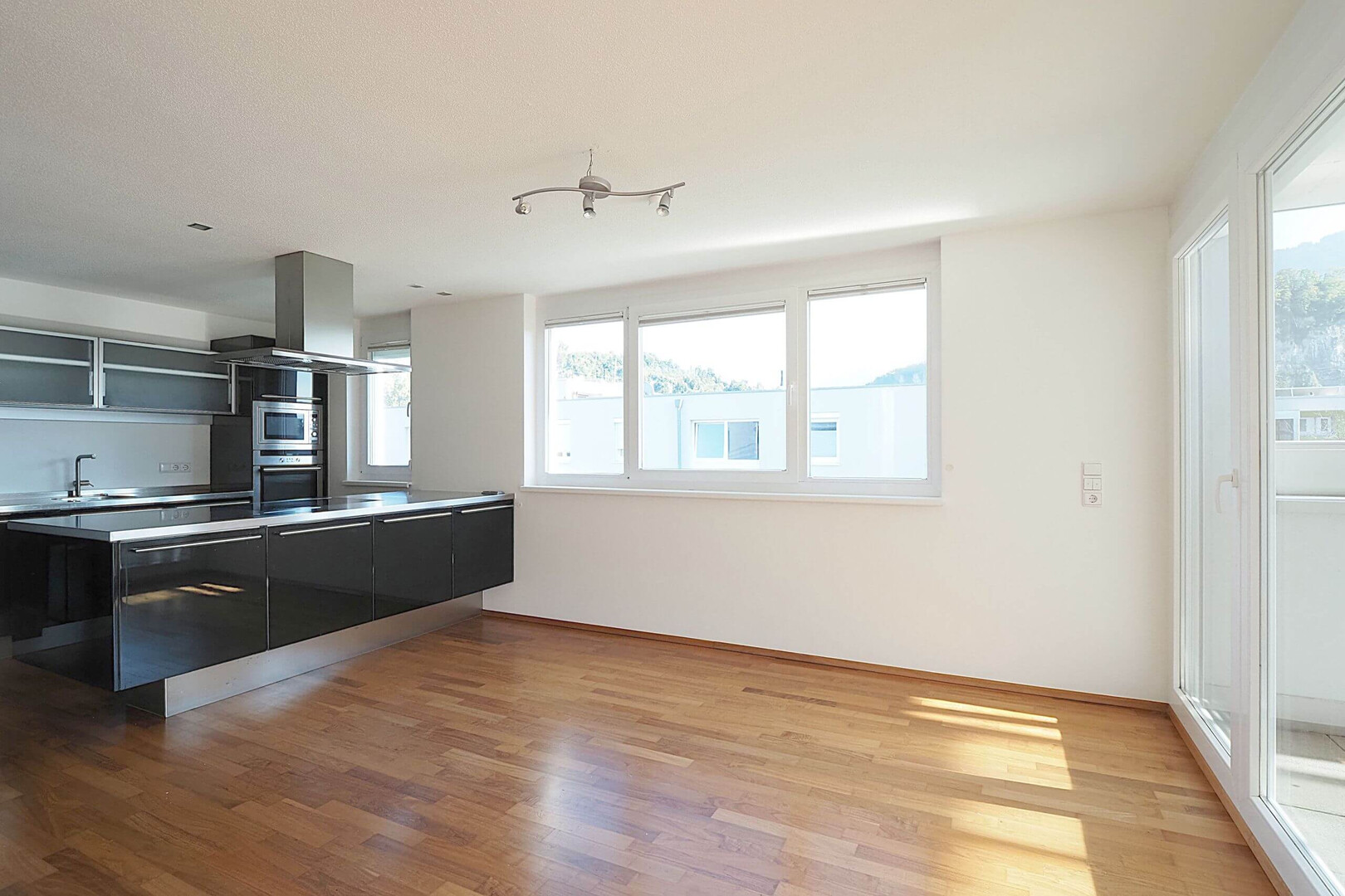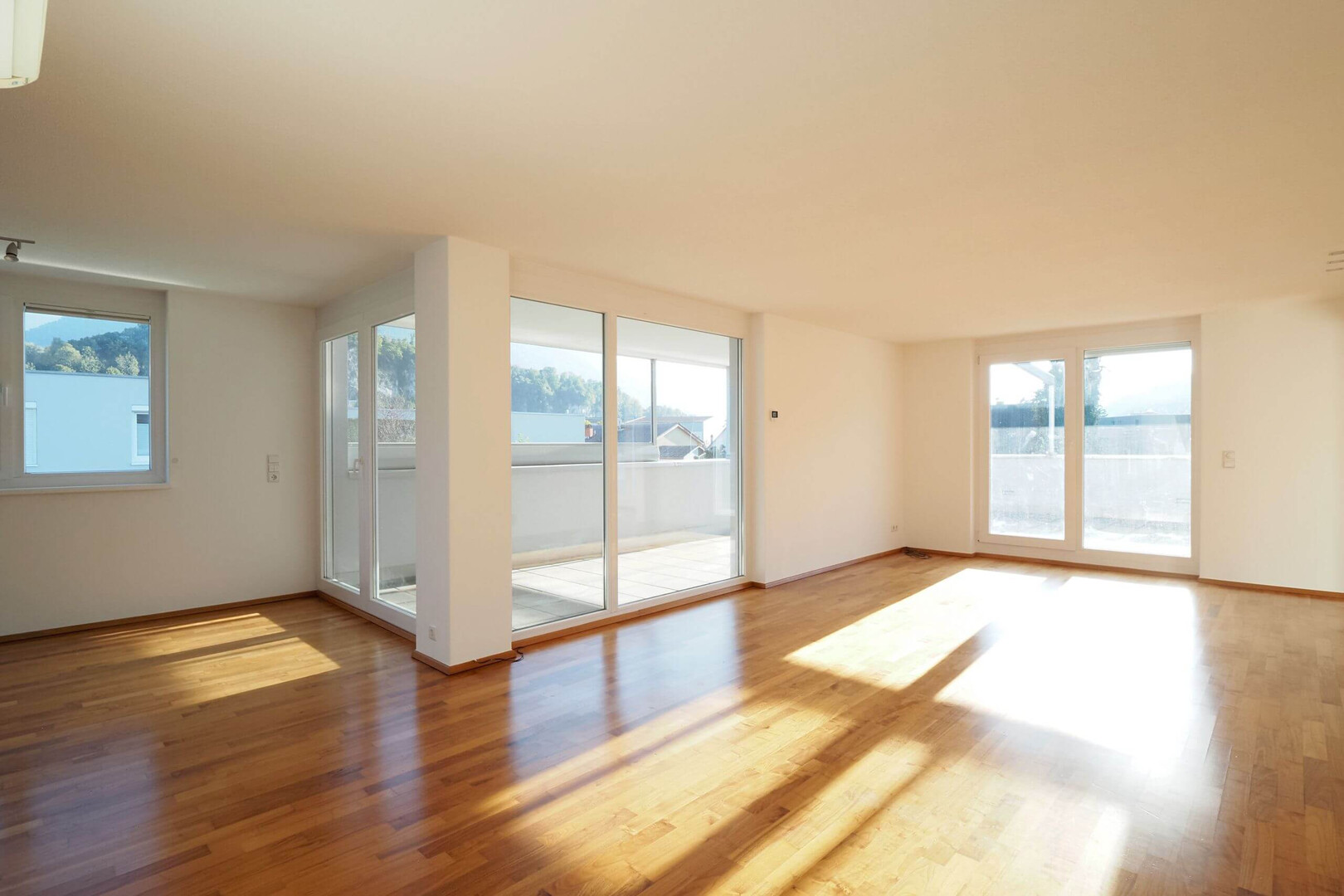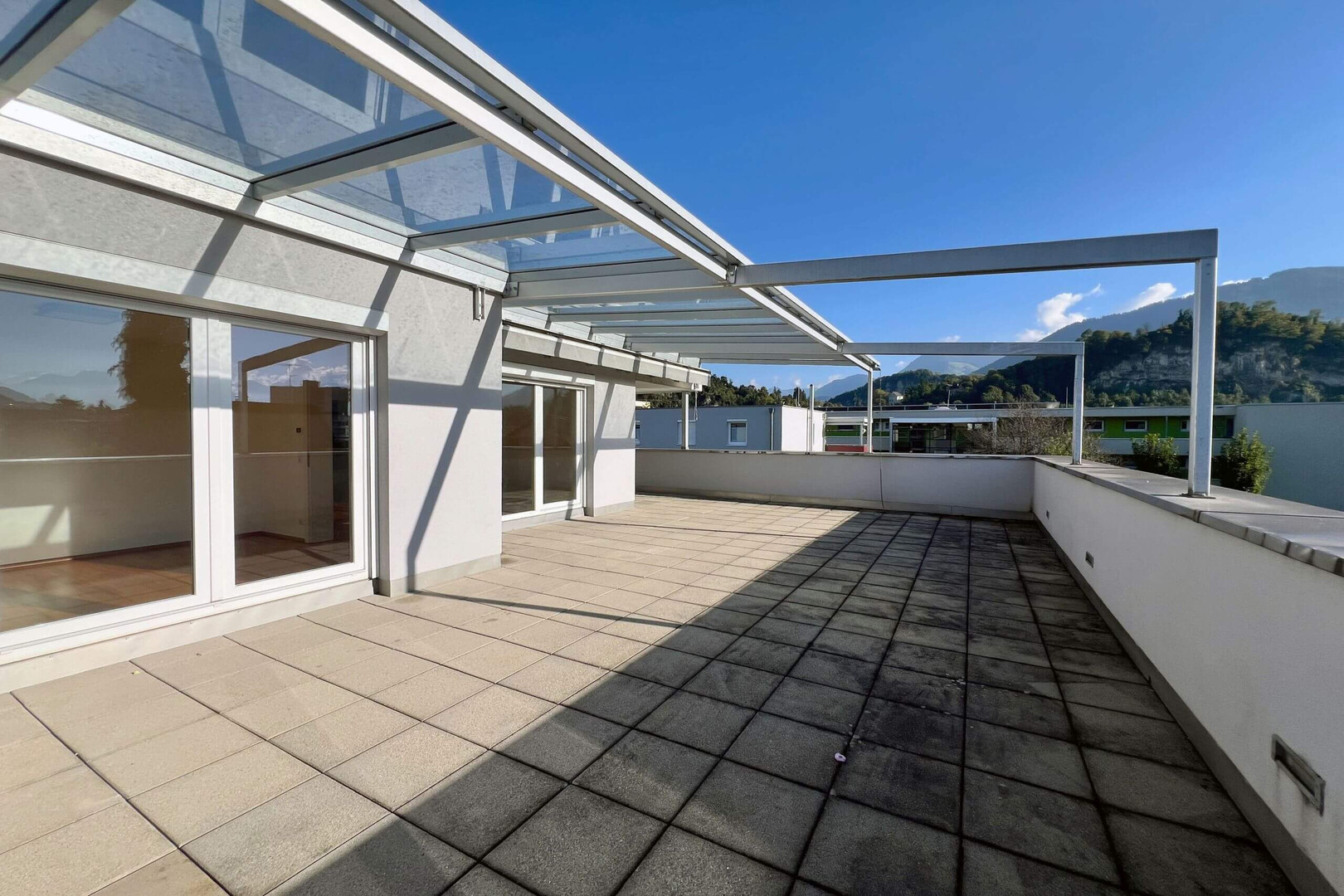 Die Terrasse ist teilweise überdacht und somit vielseitig nutzbar – bei Sonne, Wind oder leichtem Regen. Dank der perfekten Ausrichtung genießen Sie den ganzen Tag über Sonne und spektakuläre Sonnenuntergänge am Abend. Ihre ganz persönliche Oase mitten in Feldkirch.