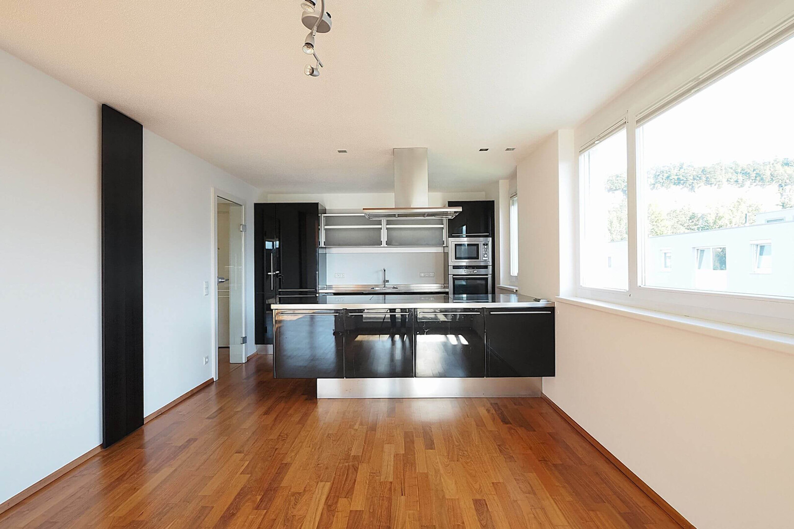 Das Zentrum der Wohnung bildet der großzügige, lichtdurchflutete Wohn-, Ess- und Kochbereich. Die offene Küche ist mit Einbaugeräten ausgestattet und bietet viel Platz für die gesamte Familie – perfekt für gemeinsame Kochabende und gesellige Stunden. Große Fensterflächen sorgen für eine angenehme Wohnatmosphäre und viel Tageslicht.