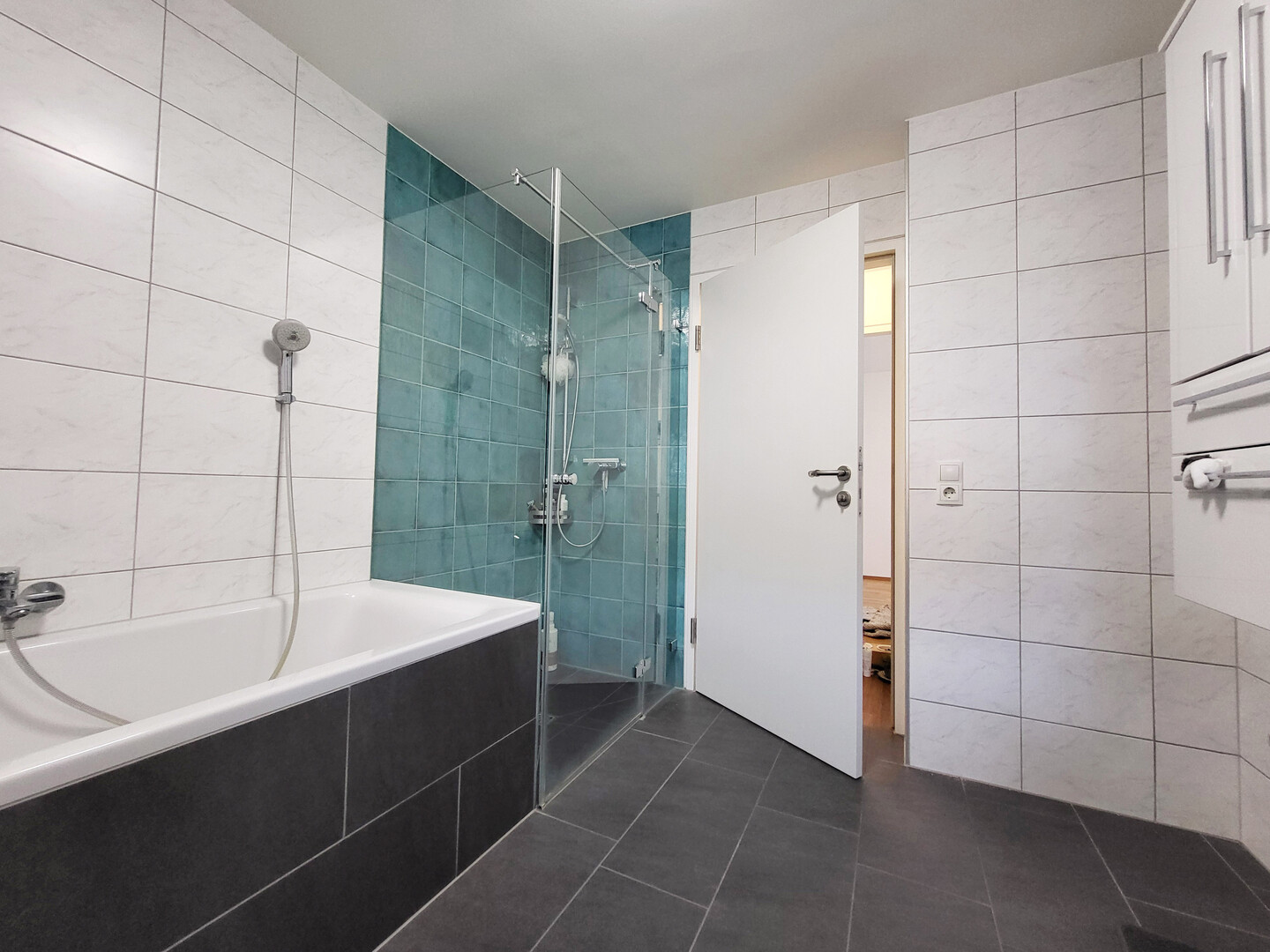 - Geräumiges Badezimmer mit Badewanne, Dusche und Tageslicht (Fenster)