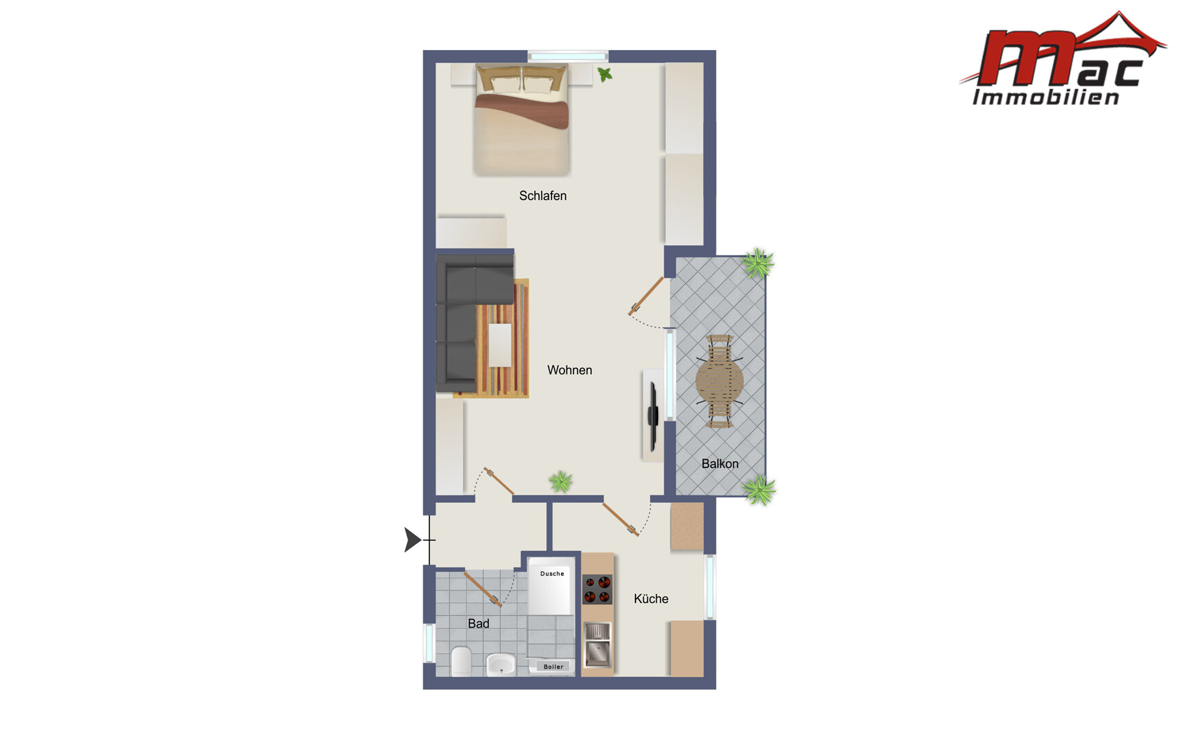 Mit einer Wohnnutzfläche von rund 35 m² bietet die Wohnung eine kompakte, optimal gestaltete Raumaufteilung und wirkt dank der freundlichen Lichtverhältnisse besonders hell und einladend.