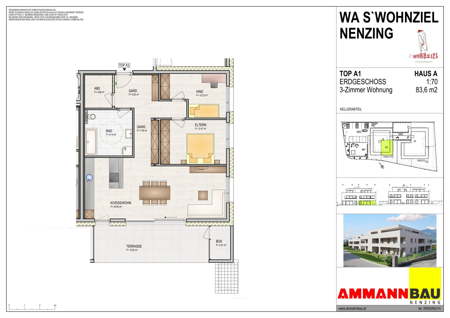 Ammann Wohnbau errichtet in Nenzing Beschlingerstraße/Tannenbildstraße in gewohnter Wohnqualität Wohnungen zum wohlfühlen. Die vom Architekturbüro Atelier Rainer+Amann geplante Wohnanlage besticht durch moderne, zeitlos schöne Architektur. Nur 17 Einheiten versprechen ein ungewohntes Wohngefühl einer Wohnanlage. Die Wohnungen sind über einen Personenlift barrierefrei zugänglich. Die Wohnungen im Erdgeschoss verfügen über einen eigenen Gartenanteil. Stellplätze für Besucher befinden sich im Außenbereich der Anlage, die Einstellplätze befinden sich in der Tiefgarage welche um € 23.000.- zusätzlich erworben werden können.