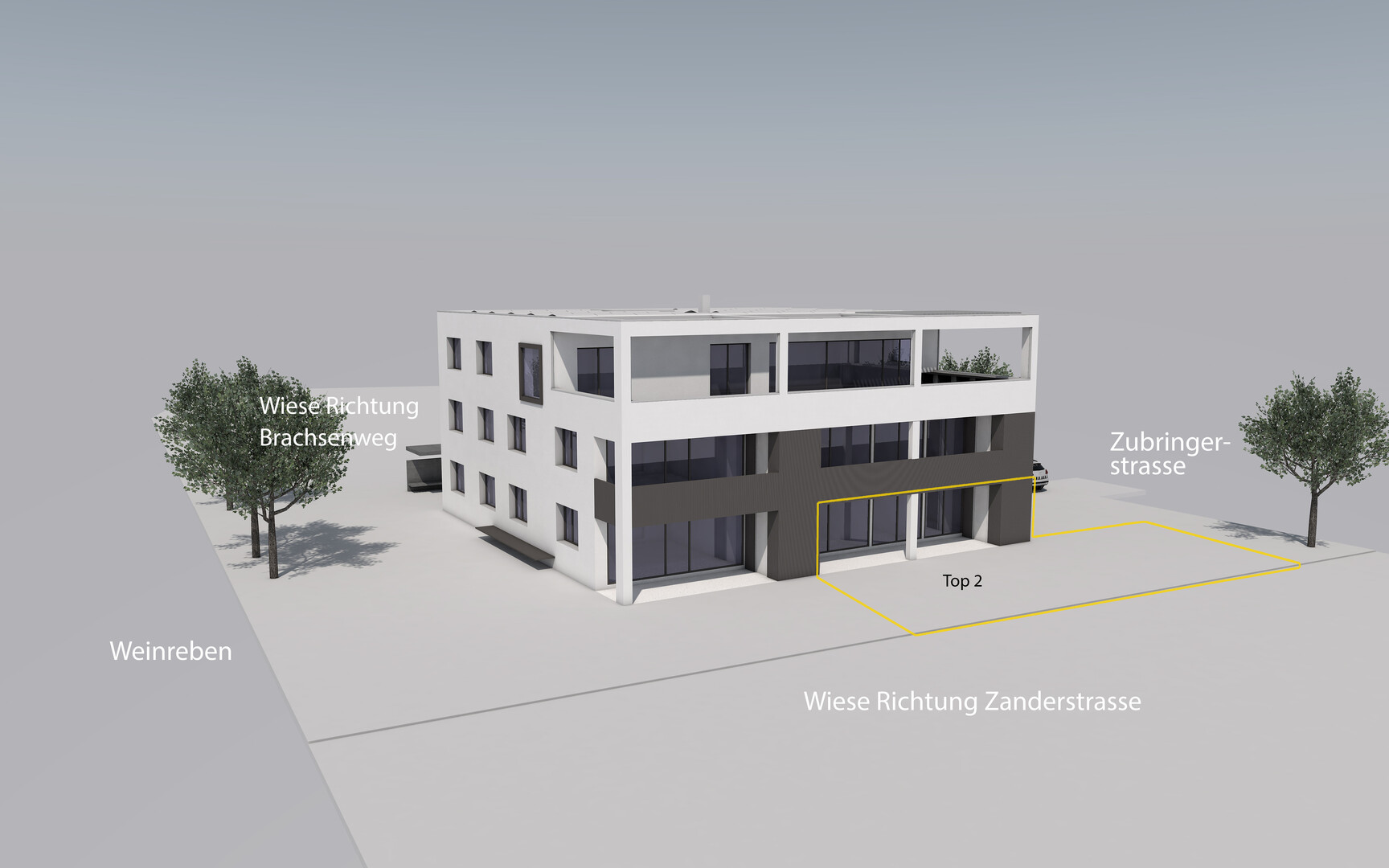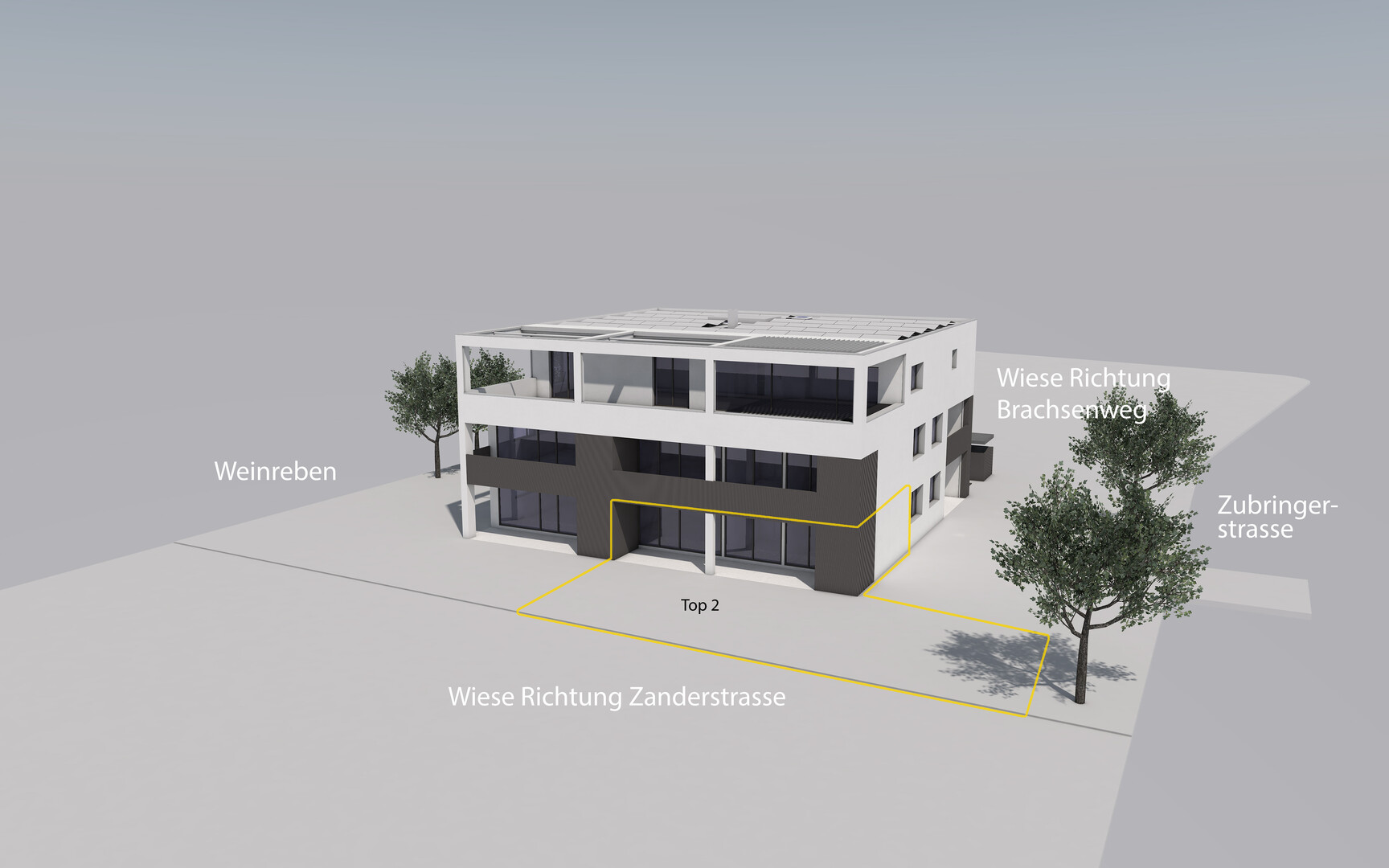 WohnenimWein – das ist ein dreigeschossiges Wohngebäude mit Flachdach mit nur 6 Mietwohneinheiten. Eine davon wird eventuell auch touristisch genutzt. Die 3- und 4-Zimmer-Woh-nungen sind Richtung Süden und Westen orientiert. Sie sind mit schönen und großen überdachten Balkonen versehen. Zudem verfügen die Wohnungen im Erdgeschoss über großzügige Privatgärten, die zum Teil an die benachbarten Weingärten angrenzen.