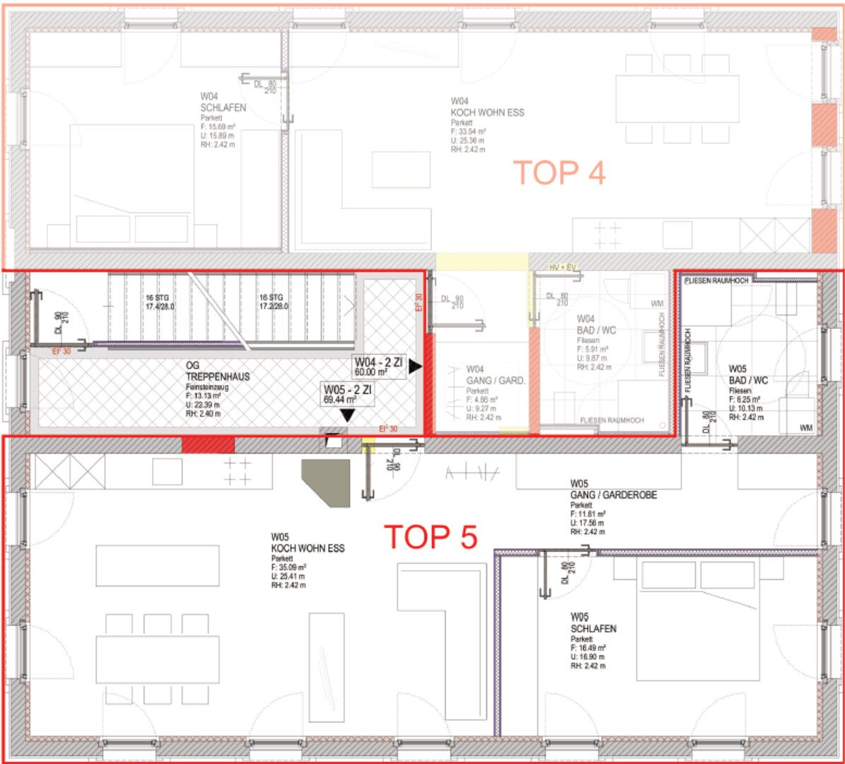 Dachboden und ein Kellerabteil mit ca. 4,5 m² zur Verfügung gestellt. Fahrräder können neben der abgeschirmten Müllstation überdacht abgestellt werden.